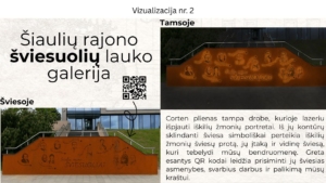 Projekto pristatymas: Projektas skirtas įamžinti ir viešinti Šiaulių rajono šviesuolius – žymius rajono literatus, kūrėjus, architektus, istorikus ir kitus reikšmingus asmenis, prisidėjusius prie krašto kultūrinės tapatybės. Projekto metu sukurta Šiaulių rajono šviesuolių lauko galerijos vizija, organizuotas viešas vizualizacijų konkursas, į kurį buvo pakviesti menininkai, architektai ir dizaineriai, o gyventojai – balsuoti už labiausiai patikusias idėjas. Komisija atrinko tris geriausius darbus, o pirmąją vietą ir 3000 eurų prizą laimėjo Ieva Poškutė, antros ir trečios vietų autoriai apdovanoti simbolinėmis premijomis. Be to, surengtas viešas Šiaulių rajono šviesuolių galerijos vizualizacijų pristatymo renginys, pristatyti rezultatai ir supažindinta visuomenė su būsimos galerijos koncepcija. Projektas prisidėjo prie istorinio regiono paveldo įprasminimo, bendruomenės įtraukimo ir kultūrinio identiteto stiprinimo. Iš viso projekte dalyvavo apie 110 dalyvių.