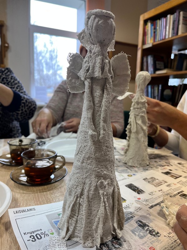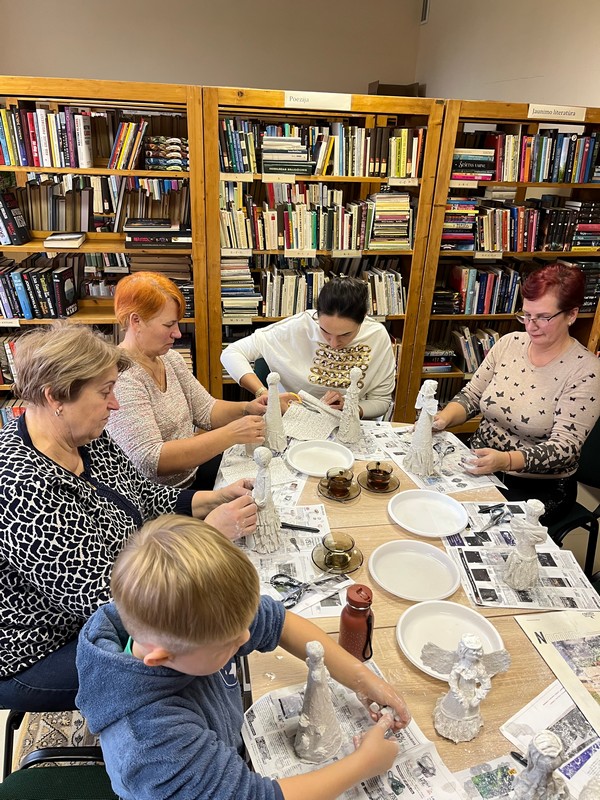 Gruodžio 21 d. Bridų bibliotekoje vyko advento renginys-edukacija – angelai iš gipsinio binto. Skambant tradicinėms lietuviškoms kalėdinėms dainoms jaukiame susibūrime diskutavome apie lietuviškas tradicijas nūdienoje, dalinomės prisiminimais iš vaikystės, tiesiog bendravome ir gaminome angelus iš gipsinio binto. Netgi gamta prisidėjo prie šventiškos nuotaikos – šaltukas ir saulutė šypsojosi pro langus. Buvo labai gera, artima ir malonu kartu gerti vaistažolių arbatą, išlaisvinti vaizduotę kūryboje ir prisiminti, kad Kalėdos – tai visų pirma žmonės, jų bendravimas, tradicijų ir papročių puoselėjimas.