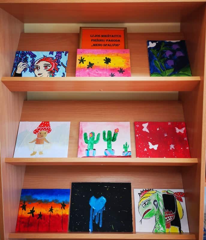 Šiuo metu Aukštelkės bibliotekoje eksponuojama Lėjos Mikštaitės piešinių paroda ,,Meno spalvos“.