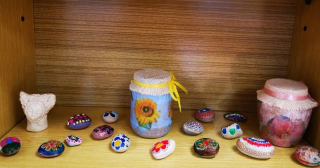 Aukštelkės bibliotekoje nuo 2021 m. rugsėjo 1 d. eksponuojama Aukštelkės socialinės globos namų gyventojų kūrybos darbų paroda. Parodoje eksponuojami įvairūs darbai: lėlės ir angelai pagaminti naudojant papjė mašė technika( pranc. papier-mâché ‘kramtytas popierius’) – plastiška popieriaus skiautelių pavidalo žaliava arba masė, paprastai sumaišyta su klijais, gipsu, krakmolu ar kitokiais rišikliais, naudojama tam tikriems gaminiams daryti ir papuošta servetėlėmis. Stiklo indai ir akmenukai dekoruoti dekupažo technika. Vazelės pagamintos iš gipso binto ir nuspalvintos akrilu.