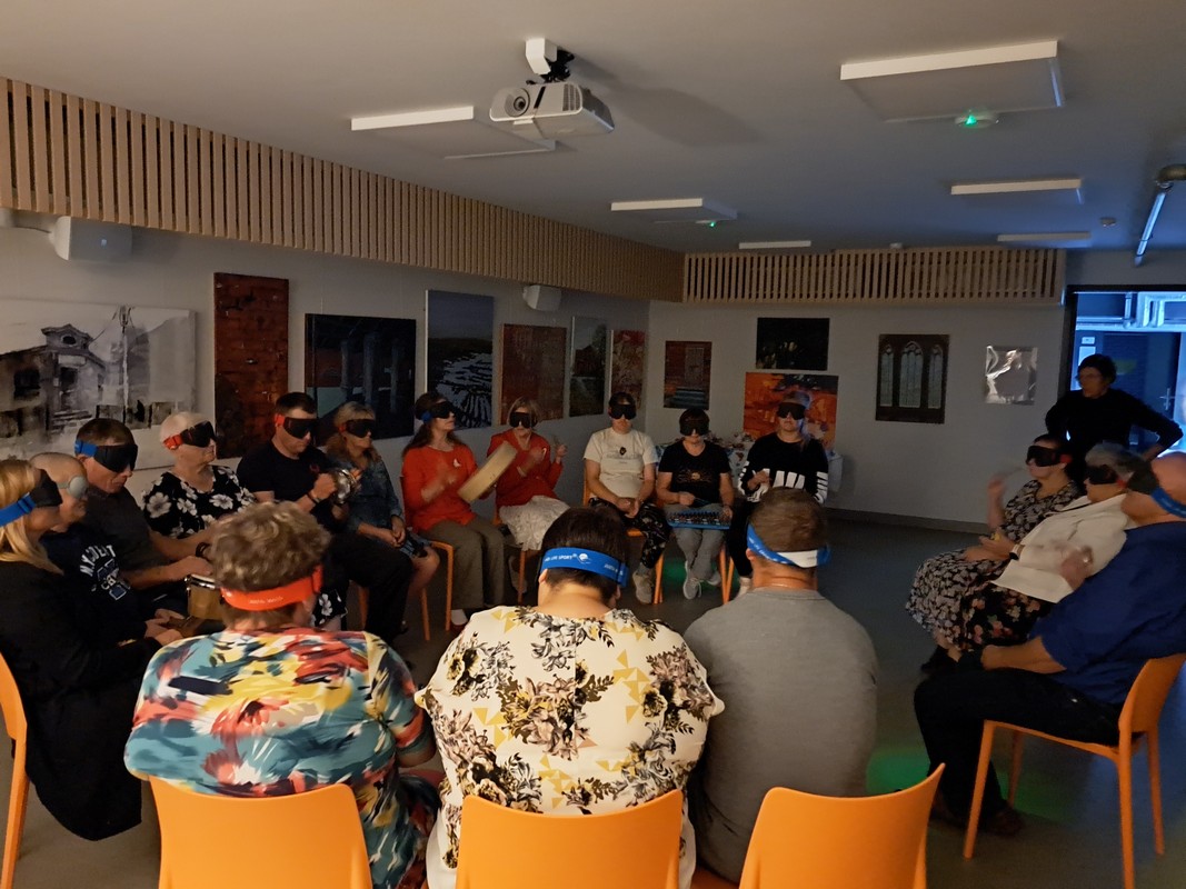 Šį kartą renginio dalyviai iš Šiaulių krašto žmonių, sergančių cukriniu diabetu, klubo „Lemtis“, Šiaulių r. socialinių paslaugų centro „Apsaugotas būstas“, VšĮ Dienos centro sutrikusio intelekto asmenims ir Šiaulių r. neįgaliųjų klubo „Versmė“ turėjo galimybę įsitraukti į spektaklį visiškoje tamsoje – ne regėdami, bet vadovaudamiesi kitais pojūčiais: lytėjimu, klausa, uosle, skoniu ir intuicija. Žiūrovai buvo pakviesti į dvasinę kelionę, kurios metu raginami pažinti save, suvokti savo unikalumą ir sustiprinti pasitikėjimą savimi.