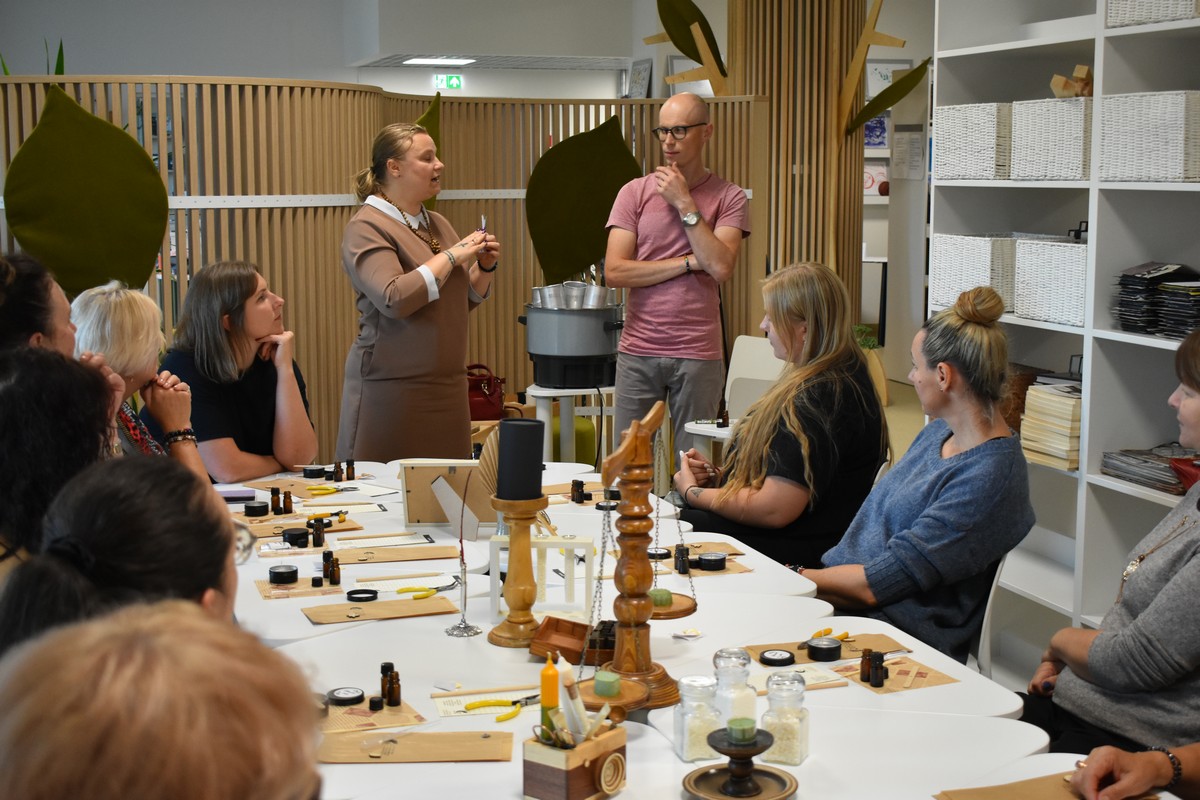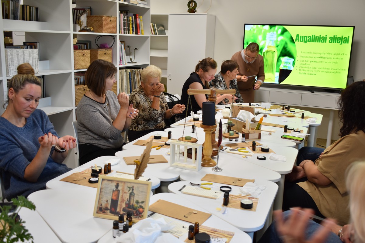 Šiaulių rajono savivaldybės Vytauto Vitkausko viešoji biblioteka rugsėjo 24 dieną sukvietė visus, neabejingus kvapų ir žvakės liepsnos magijai. Bibliotekos Edukacijų erdvėje vyko magiškos ir kvapnios masažinių žvakių gamybos dirbtuvės ir paskaita „Eterinių aliejų nauda psichoemocinei asmens savijautai ir masažinių žvakių gamyba“, kurią vedė VšĮ „Šeštasis pojūtis“.