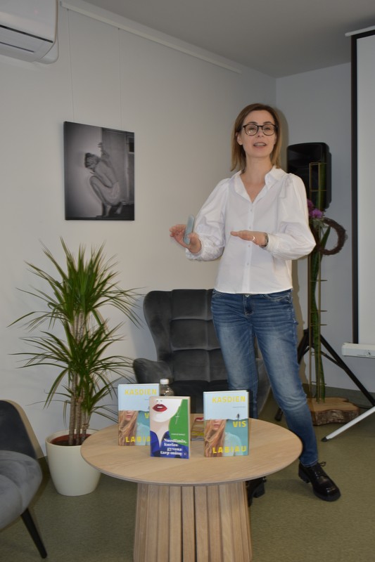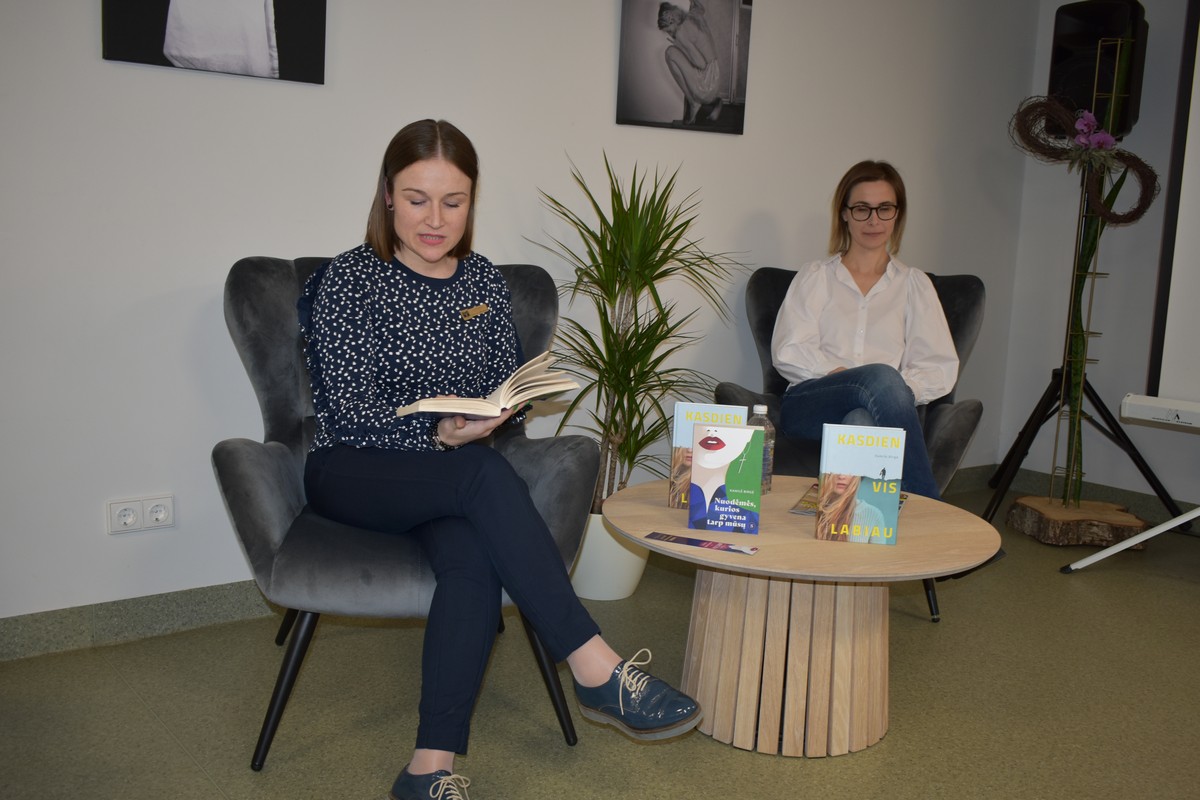 Susirinkusiems rašytojos gerbėjams vyr. bibliotekininkė Vilma Grudžinskienė perskaitė ištrauką iš knygos „Nuodėmės, kurios gyvena tarp mūsų“, o autorė trumpai pristatė savo naująją, jau trečiąją knygą (šį kartą apie gydytoją Henriką).