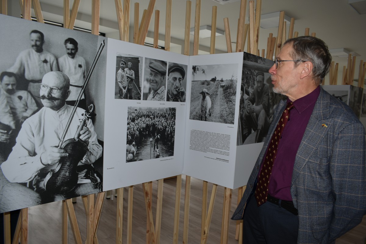 Prieš prasidedant parodos pristatymui, prof. L. Mažylis apžiūrėjo bibliotekos erdves bei šiuo metu bibliotekoje eksponuojamą išskirtinę Antano Dilio fotografijų parodą.