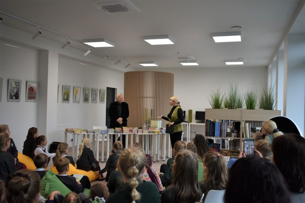 Rugsėjo 13 dieną – Bičiulių dieną, tęsiantis Šiaulių rajono savivaldybės viešosios bibliotekos atidarymo savaitės renginiams, bibliotekoje lankėsi vaikų rašytojas Vytautas Račickas ir susitiko su 2–3 klasių mokiniais. Jis pasakojo apie save, kūrybinį kelią, kūrinius (yra išleidęs apie 40 knygų), linksmai bendravo su mokiniais ir nuoširdžiai atsakinėjo į pačius keisčiausius vaikų klausimus. Malonu buvo klausytis autoriaus skaitomų ištraukų iš knygų, taip pat vaikai turėjo progą paklausyti rašytojo sukurtų eilėraščių. Susitikimo dalyviai domėjosi, kokio amžiaus rašytojas pradėjo rašyti, kiek lapų sudaro jo storiausia knyga, kiek paprastai užtrunka rašydamas kūrinį, kodėl savo kūrinius dažniausiai skiria vaikams, kas kuria iliustracijas jo kūriniams. Mokinukai buvo labai drąsūs ir aktyvūs. Visi vaikai aktyviai dalyvavo pokalbyje, kėlė rankas, pateikė knygų autoriui įvairiausius klausimus. Už įdomiausius atsakymus ir už pateiktus klausimus vaikai gavo dovanų Vytauto Račicko knygų. Pasibaigus susitikimui prie stalelio su rašytojo knygomis nusidriekė ilgiausia eilė. Vaikai kantriai laukė Vytauto Račicko autografo.