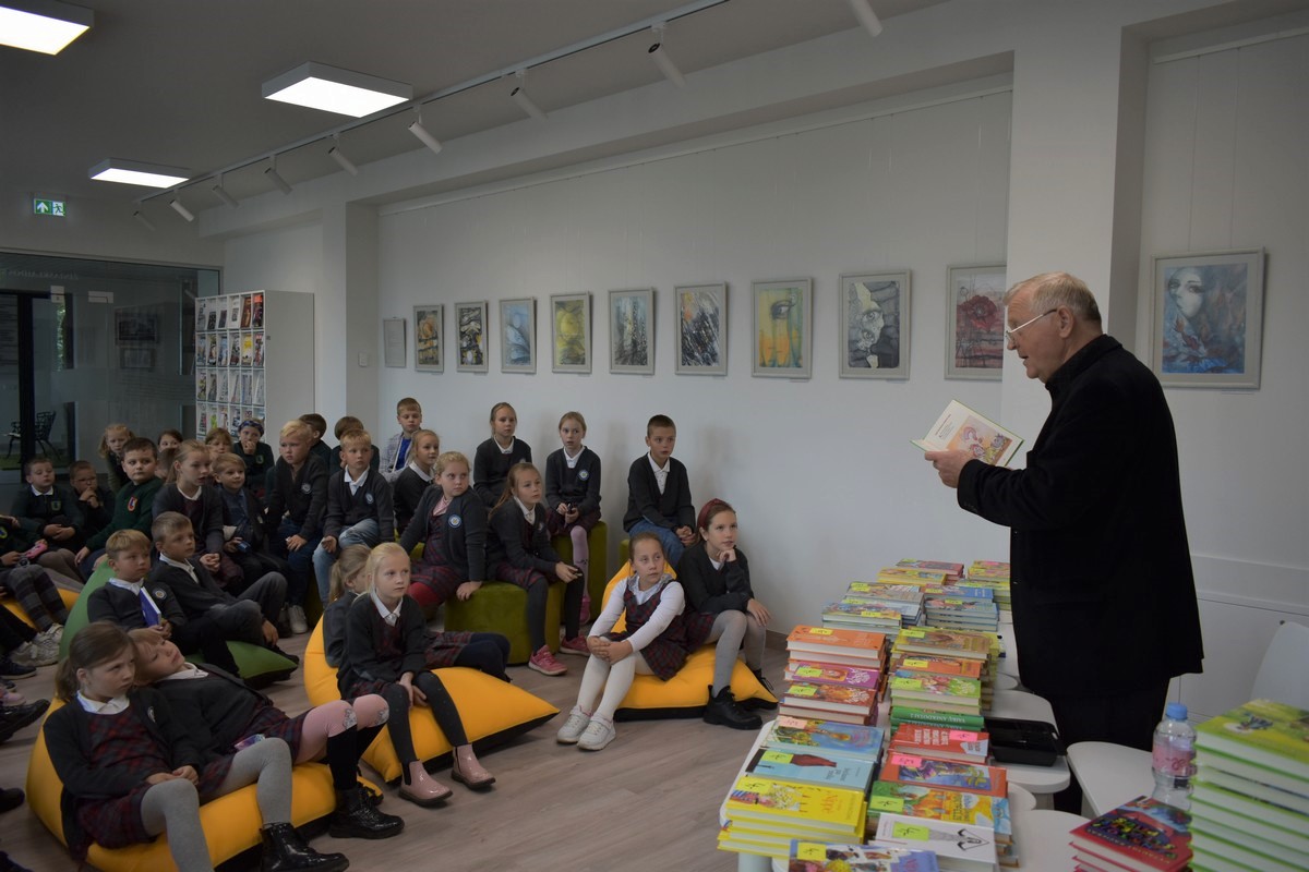 Rugsėjo 13 dieną – Bičiulių dieną, tęsiantis Šiaulių rajono savivaldybės viešosios bibliotekos atidarymo savaitės renginiams, bibliotekoje lankėsi vaikų rašytojas Vytautas Račickas ir susitiko su 2–3 klasių mokiniais. Jis pasakojo apie save, kūrybinį kelią, kūrinius (yra išleidęs apie 40 knygų), linksmai bendravo su mokiniais ir nuoširdžiai atsakinėjo į pačius keisčiausius vaikų klausimus. Malonu buvo klausytis autoriaus skaitomų ištraukų iš knygų, taip pat vaikai turėjo progą paklausyti rašytojo sukurtų eilėraščių. Susitikimo dalyviai domėjosi, kokio amžiaus rašytojas pradėjo rašyti, kiek lapų sudaro jo storiausia knyga, kiek paprastai užtrunka rašydamas kūrinį, kodėl savo kūrinius dažniausiai skiria vaikams, kas kuria iliustracijas jo kūriniams. Mokinukai buvo labai drąsūs ir aktyvūs. Visi vaikai aktyviai dalyvavo pokalbyje, kėlė rankas, pateikė knygų autoriui įvairiausius klausimus. Už įdomiausius atsakymus ir už pateiktus klausimus vaikai gavo dovanų Vytauto Račicko knygų. Pasibaigus susitikimui prie stalelio su rašytojo knygomis nusidriekė ilgiausia eilė. Vaikai kantriai laukė Vytauto Račicko autografo.
