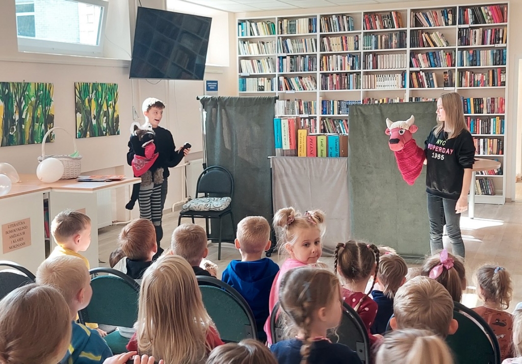 Rugsėjo 27 dieną į biblioteką sugužėjo didžiulis būrys Šiaulių rajono Dubysos aukštupio mokyklos Bubių skyriaus ugdytinių iš „Zuikučių“, „Boružiukų“ ir „Drugelių“ grupių. Juos atlydėjo ikimokyklinio ugdymo mokytojos Laura Sartauskienė, Kristina Jankauskienė ir Gintarė Sirunaitienė. Mažieji lankytojai žiūrėjo Kurtuvėnų bibliotekos lėlių teatro „Kurtinukai“ spektaklį „Vilkas, kuris iškrito iš knygos“ bei „Magijos šou“ pasirodymą. Lėlių teatro spektaklis buvo nuostabus ir įdomus vaikams, nes jie įsitraukė į pasakojimą. Tai puikus būdas skatinti vaikų skaitymo įgūdžius nuo pat ankstyvo amžiaus. Tikiuosi, kad darželinukai smagiai praleido laiką bibliotekoje!