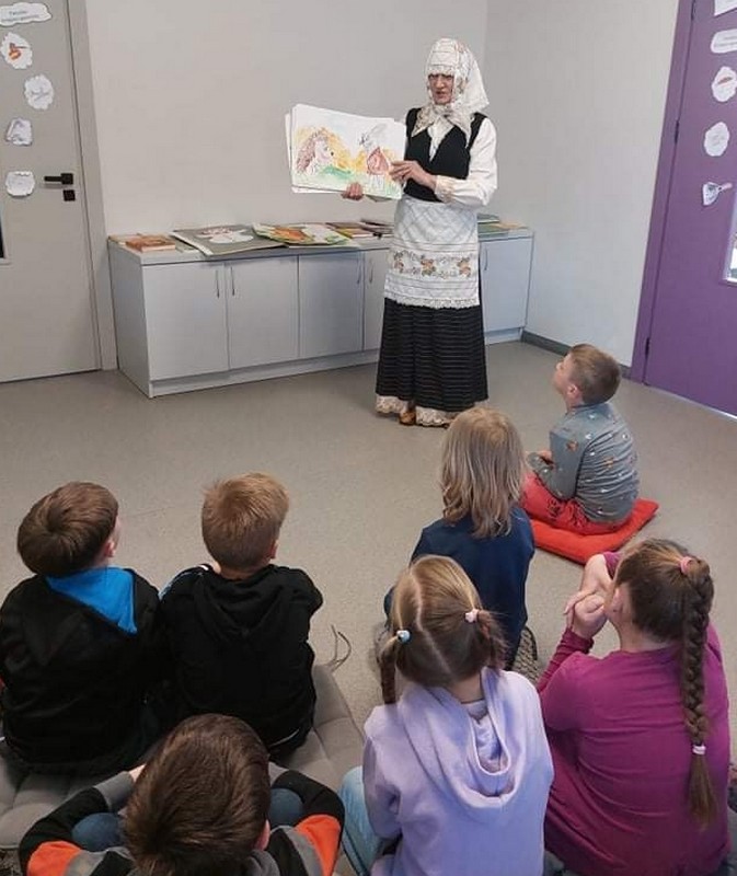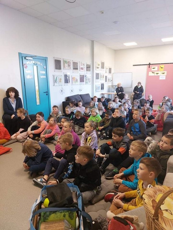 Šią savaitę visuose mokyklos skyriuose (gegužės 9 d. – Aukštelkės, gegužės 10 d. – Bubių ir gegužės 13 d. – Kurtuvėnų) svečiavosi Pasakų močiutė (Kurtuvėnų bibliotekos vyresnioji bibliotekininkė Aurelija Kniurienė). Ji supažindino vaikus su pasakų žanru, personažais, sekė pasakas, naudodama savo nupieštus piešinius, pagamintas priemones. Kad būtų lengviau įsivaizduoti pasakų kūrėjo darbą, vaikai turėjo galimybę pasaką kurti patys. Istorijos pradžią sukurti padėjo vyresn. bibliotekininkės nupiešti veikėjai: liūtas, vilkas, lapė, gaidys, katė. Pasitelkdama vaikiškų knygelių autoriaus, iliustratoriaus Dainiaus Šukio pasakų kūrimo metodu, bibliotekininkė A. Kniurienė supažindino su pasakos pradžia, kurioje gyvenantis liūtas karalius, prieš eidamas miegoti, pasideda karūną, kurią kažkas pavagia. Buvo traukiamos kitų miško gyvūnų kortelės bei priemonės (laikrodis, servetėlės, žirklės, vienkartinės nosinaitės), kurios padėjo sekti pasaką. Galop, pasakos pabaigoje, dingusios karūnos detektyvas išspręstas – karūną pavogė kiaulė.