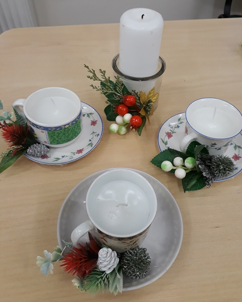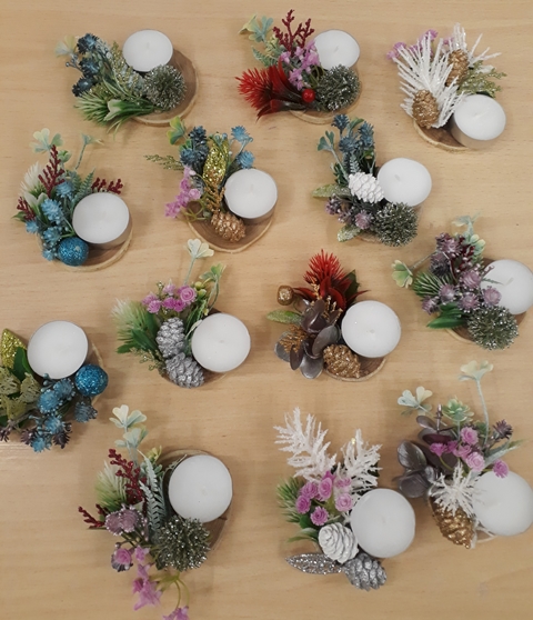 Trečiadienį darbštuolių laukė žvakidžių gamyba. Žvakutės buvo klijuojamos ant medinių pagrindų, kurie išpuošti eglių šakelėmis, įvairiais papuošimais. Už juos visi dėkingi Šiaulių rajono senjorų ir neįgaliųjų asociacijos pirmininkei Irenai Urbonavičienei.