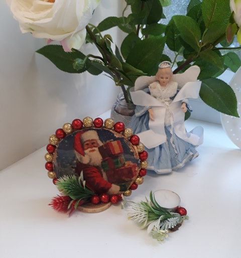 Antradienį mokinukai gamino dekupažinius kalėdinius paveikslėlius. Ant medinės ripkelės klijavo spalvingas servetėles, po to pritvirtino stovelį – taip buvo sukurtos neprilygstamos dovanėlės.