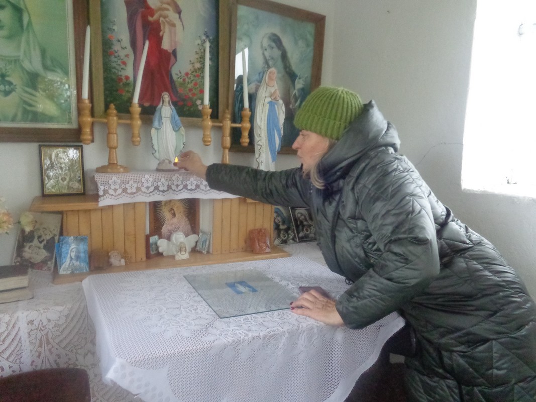 Edukacijos metu apžiūrėjome koplytėlės viduje esančias skulptūrėles, įvairius rožančius, šventųjų paveikslus, prisiminėme žmonių pasakojimus.