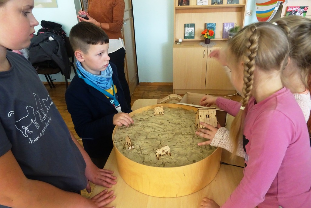 Edukacinės veiklos prasidėjo sensoriniu skaitymu. Vaikams buvo skaitoma Peppa Pig knygutė „Žaidimai smėlio dėžėje“. Klausydamiesi vaikai įsitraukė į pasakojimą, kartu su kiaulyte Peppa ir jos draugais apsigyveno smėlio dėžėje, statė namus, tiesė gatves, sodino medžius, kasė ežerą. Vaikai turėjo galimybę patirti pasakojimą kitais pojūčiais, tiesiogiai buvo įtraukti į knygoje pasakojamą istoriją, pagal knygos tekstą atliko praktines užduotis, panaudojo sensorines priemones. Atlikdami užduotis patyrė daug gerų emocijų.