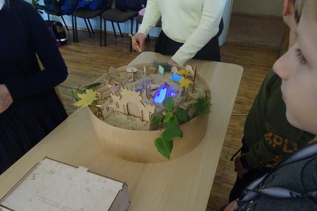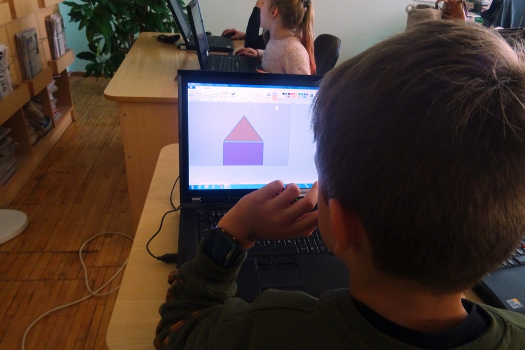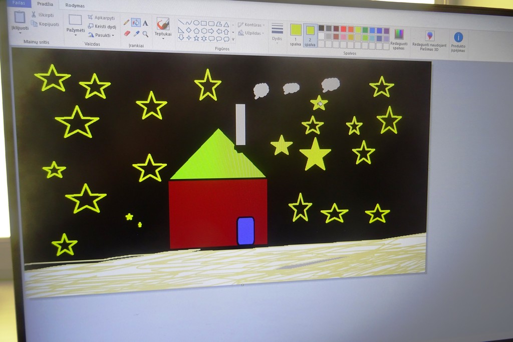 Įrengus salą, vaikai buvo pakviesti kompiuteriu pasimokinti piešti „Paint“ programa. Edukatorė pristatė vaikams piešimo programą, jos privalomus ir pakvietė išbandyti. Mokiniai piešė salą, kurią pastatė sensorinių skaitymų metu, kiekvienas galvojo jai pavadinimus.