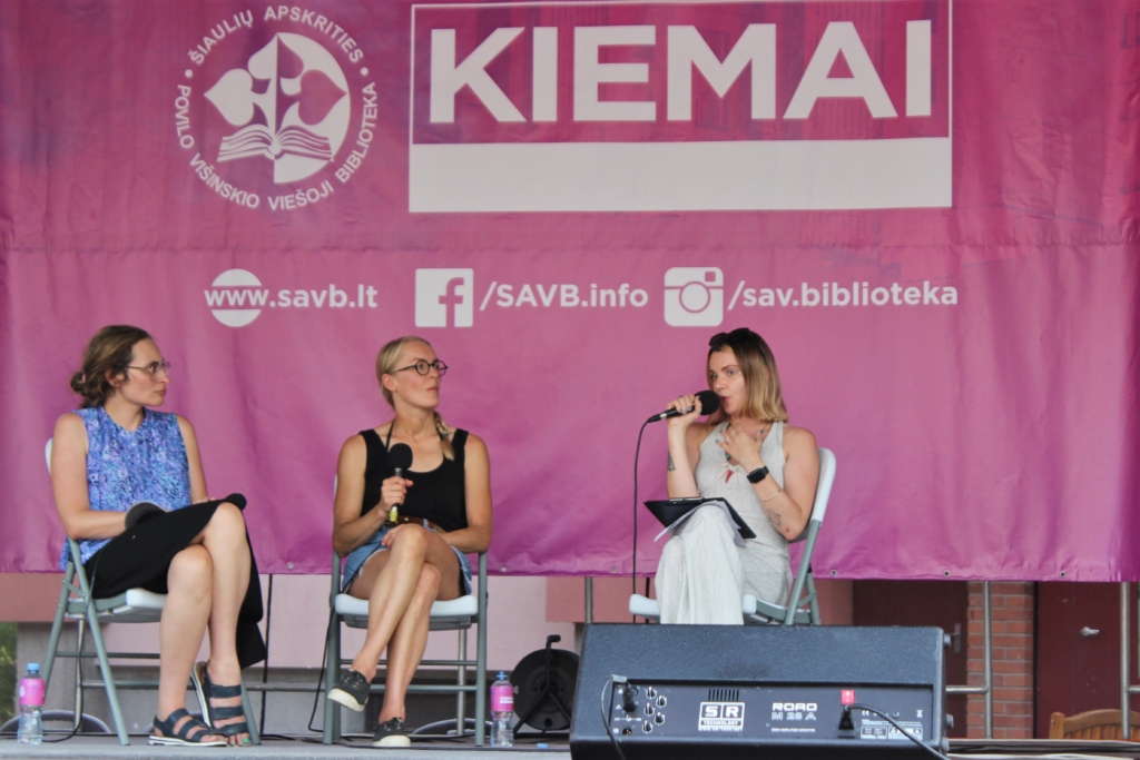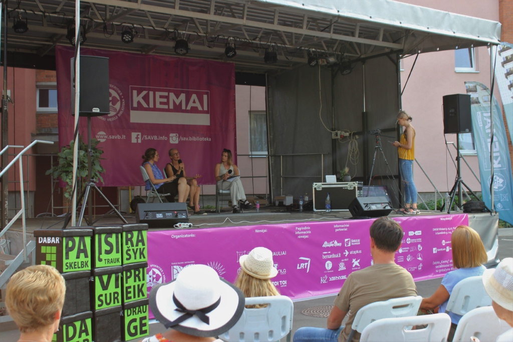 Vakare žiūrovų laukė renginio vinis – pokalbis-diskusija su charizmatiškomis ir kultūros pasaulyje nusipelniusiomis moterimis: kino režisierėmis, populiarių ir ne vienu apdovanojimą sulaukusių filmų autorėmis Lina Lužyte ir Egle Vertelyte bei diskusijos moderatore, menininke, Jurgos Ivanauskaitės premijos laureate, apsakymų rinkinio „Miesto šventė“ autore Lina Simutyte. Pokalbio laikas neprailgo diskutuojant aktualiomis temomis apie Lietuvos moterų režisierių galimybes ir iššūkius, už kadro įprastai liekančius ir žiūrovui nežinomus procesus, režisierių išgyvenimus ir jaudinantį kelią iki galutinio produkto – užbaigto filmo.