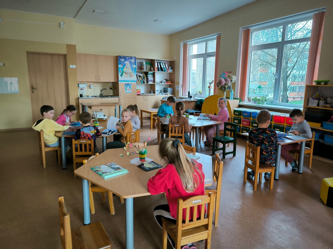 Susipažinus su knygelėmis, kilo idėja nupiešti labiausiai sudominusią knygelę. Vaikučiai ne tik nupiešė, bet kai kurie užrašė ir knygelės pavadinimą. Kiekvienas puikiai užrašė savo vardą kitoje piešinuko pusėje. „Smalsučių“ grupės piešinukai papuošė Paežerių bibliotekos vaikų kampelį.