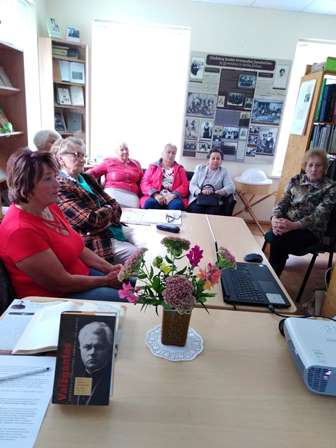 Bibliotekininkė susirinkusiems akcentavo, kad rašytojas pririnko į savo kūrybos aruodus ne vienas rieškutes deimančiukų – gyvų ir šviesių žmonių paveikslų, jų likimų su polėkiais ir nuopuoliais, gamtos ir kultūros vaizdų. Literatūriniu pseudonimu pasirinko Vaižganto, t. y. linų ir kanapių globėjo, kilusio iš žemės, kankinto, mirusio ir prisikėlusio iš žemės mitologinės būtybės, vardą. Visur drąsiai reiškė savo nuomonę, gal todėl gyvenimas jam nebuvo lengvas. O iš tikro – Vaižgantas lyg skulptorius minkė gyvenimo molį. Rašė nešlifuotu, neišlaižytu, o drėbtiniu stiliumi, kasdienės duonos rupumo žodžiais. Bet iš tų versmių ir „buities sietuvų“ tebetrykšta Vaižganto tekstų skaitymo ir klausymo malonumas, užkabinantis, pagaunantis skaitytoją arba klausytoją.