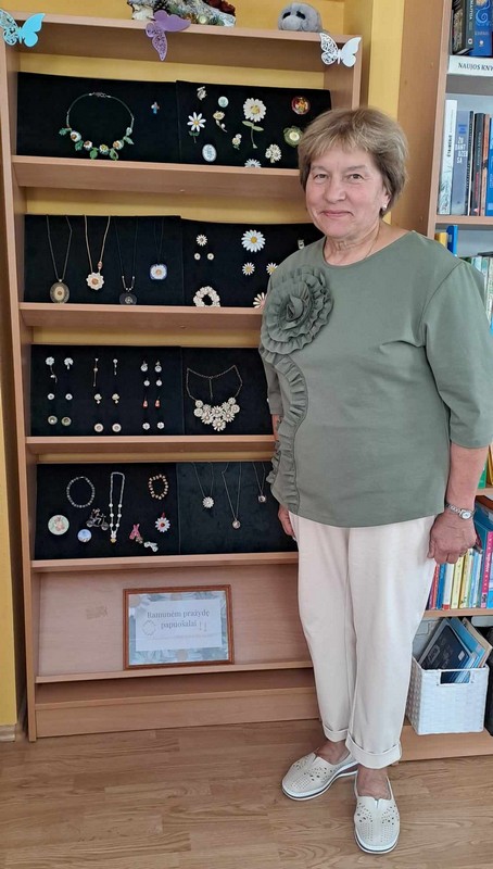 Graži ir vasariška rugpjūčio 14 diena sukvietė ginkūniečius į nepaprastų eksponatų parodų – „Ramunėm pražydę papuošalai“ ir „Pasipuošę ramunėm baltom“ – pristatymą Ginkūnų bibliotekoje. Nijolia Kasparavičienė mielai pasakojo apie savo kaupiamą kolekciją, jos atsiradimo istoriją ir kaip vieni ar kiti daiktai pateko į jos rinkinius. Kartu viešėjusi autorės draugė Aldona Šaulienė surengė įdomią, žaismingą ir informatyvią viktoriną „Ramunių pasaulyje“. Sužinojome, kokia įvairiapusė ir universali yra ši gyvenimo būrėja – ramunėlė.
