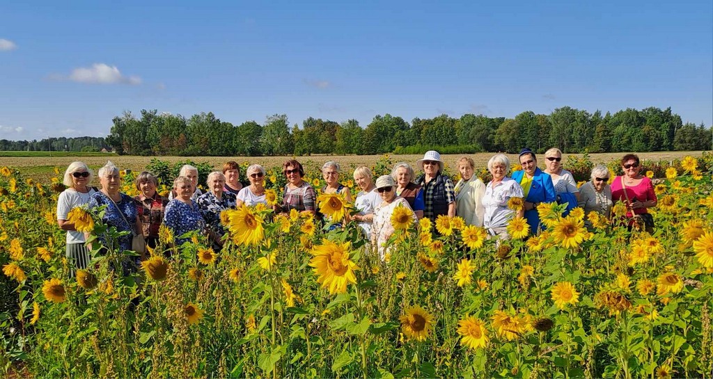 Pasigrožėti geltona saulėgrąžų jūra, kokia banguoja sodyboje „Molinė saulėgrąža“ Radviliškio rajone, Valdeikių kaime, rugpjūčio 23 d. rytą išviliojo Ginkūnų bibliotekos senjorų klubo narius į kelionę. Pasak sodybos šeimininkės Jūratės, gamta šiemet uždelsė užauginti saulėgrąžas – pavasarį jas gerokai šalnos gąsdino, po to uždelsė sausra, dėl to ne taip sparčiai jos stiebėsi. Iš pasėtų 120 dekoratyvių besėklių saulėgrąžų sudygo 115. Tarp ryškiaspalvių geltonų galvų linguoja oranžinės, citrininės, žydi ir juodosios, ir pūkuotosios saulėgrąžos. 30 arų lauke pasodintos aliejinės ir valgomosios saulės gėlės, ypač tinkamos fotosesijoms.