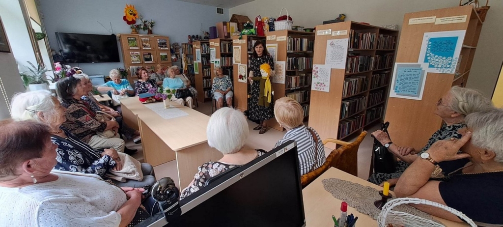 Pirmas sustojimas – prie Kurtuvėnų mokyklos-daugiafunkcio centro pastato, kuriame įsikūrusi ir Kurtuvėnų biblioteka. Senjorus pasitikusi Kurtuvėnų padalinio vyresnioji bibliotekininkė Aurelija Kniurienė pakvietė į bibliotekos patalpas, pristatė veikiantį lėlių teatro būrelį ,,Kurtinukai“, parodė sukurtas lėles.