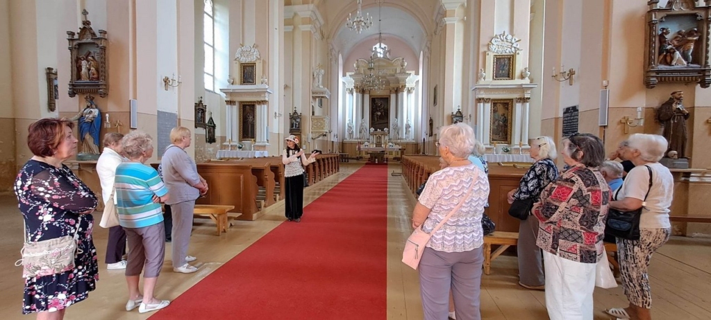 Iš bibliotekos persikėlė į Kurtuvėnų aikštę, nuo kurios prasideda ekskursija, kurią vedė Aurelija, tapusi grupės gide. Faktai – įdomu, tačiau smagios miesto istorijos – dar įdomiau! Pro sodrią medžių lapiją išvydo Kurtuvėnų bažnyčios bokštus, taku patraukė link mūrinės vėlyvojo baroko stiliaus šventovės – į ekskursiją Kurtuvėnų bažnyčios rūsiuose bei pačioje bažnyčioje.