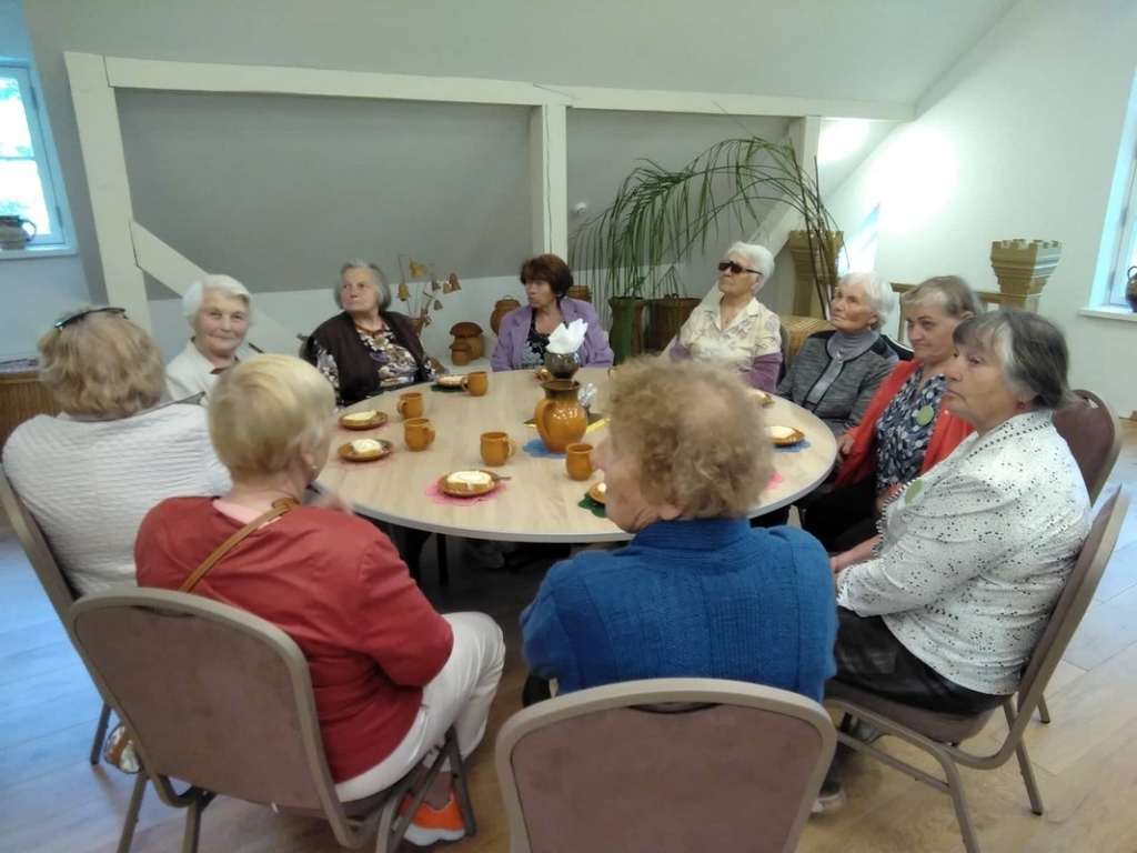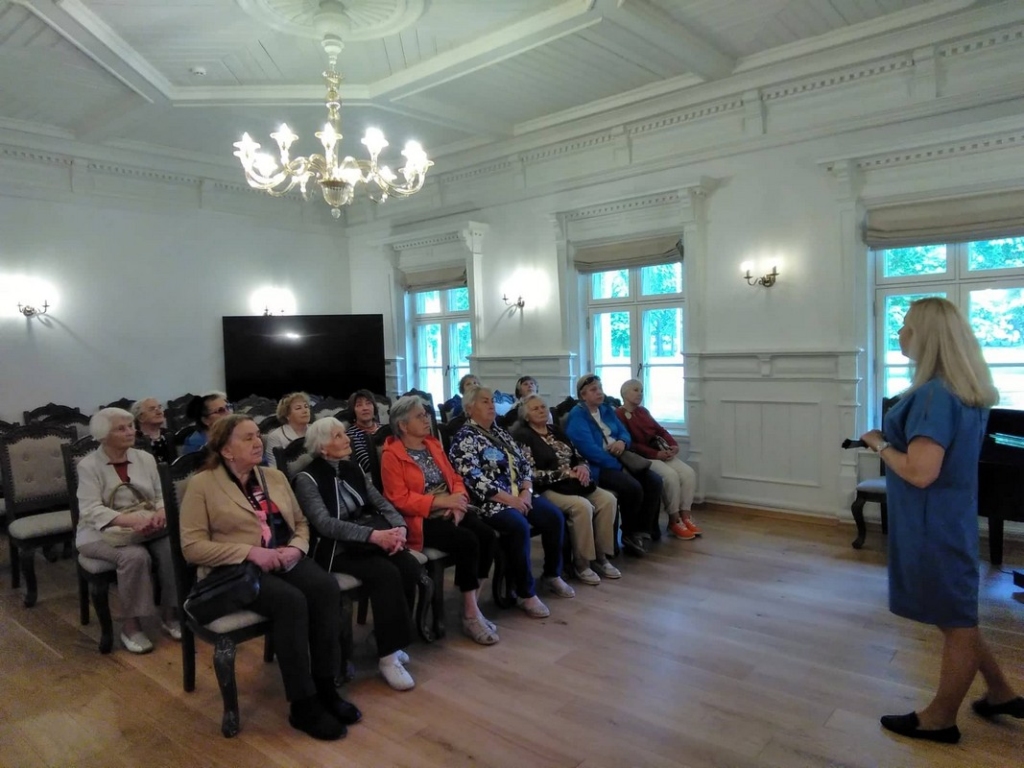 Birželio 13 d. Ginkūnų bibliotekos senjorų klubo „Gabija“ narės vyko į Kuršėnus. „Į Kuršėnus – ne tik „Kuršėnų vyniotinio“. Savo kelionę pradėjome aplankydami pagrindinę Kuršėnų aikštę. Po to pėsčiųjų tiltu keliavome į Kuršėnų dvarą. Prieš akis išniręs dvaro eksterjeras sužavėjo savo ažūriniais papuošimais, besivijančiais aplink langus, palei stogą. Senjorų būrį sutikusi gidė Lina Šukienė pakvietė aplankyti ir nusikelti į XIX amžių ir pajausti išskirtinių dvaro rūmų eleganciją, vertybes ir grožį. Praėjome parko takais, vedančiais iki Ventos upės pakrantės, kur karaliauja liepos ir vienas ilgiausių Lietuvoje – net 262 metrų ilgio – pėsčiųjų tiltas. Pasivaikščiojus po dvaro parką, buvome pakviestos užsukti į pačius rūmus. Pravėrus visiškai autentiškas likusias duris, kartu pravėrėme ir duris į istoriją. Viduje mūsų laukė dar daugiau autentikos ir įdomi dvaro istorija. Pabuvojome Baltojoje salėje, erdvėje, kurioje įrengta net ir XX a. pradžią siekiančių kalendorių ekspozicija. L. Šukienė, atvedusi prie laiptų į antrą aukštą, patikina, kad jie – 100 proc. autentiški. O antrame aukšte išvystame atvertą per šimtmečius išlikusią rąstų sieną bei laikui nepavaldžią dar vieną Kuršėnų brangenybę – legendinį Kuršėnų vyniotinį, sumanytą Eugenijos Dragūnienės. Prisėdusios prie stalo pasivaišinome žymiausiu Kuršėnų gardumynu-vyniotiniu ir puodeliu arbatos.