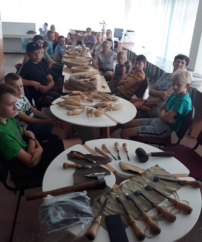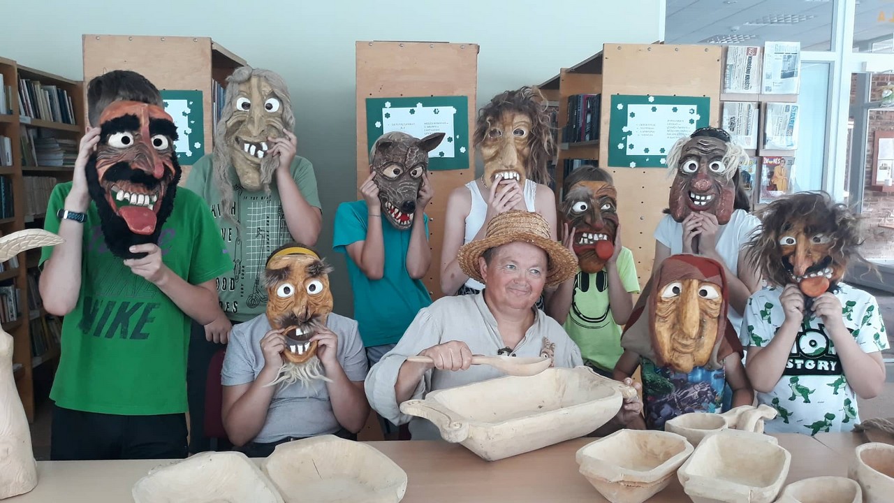 Vaikams buvo linksma ne tik klausytis šmaikštaus tautodailininko pasakojimo, stebėti jo linksmas grimasas, bet ir pasimatuoti jo išdrožtas kaukes, velnio uodegą, patriukšmauti su tarškyne.