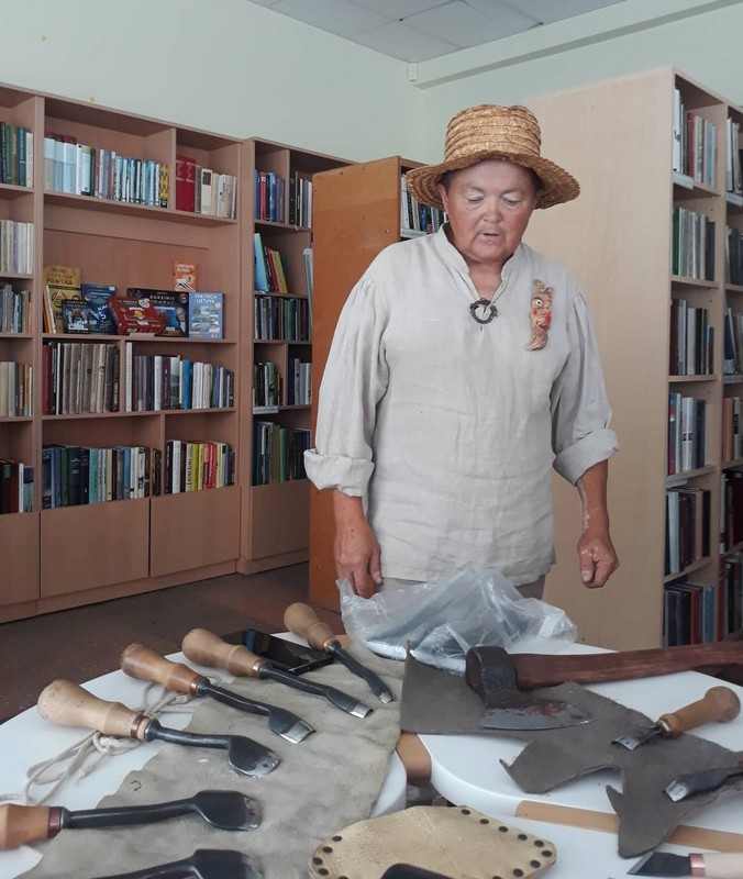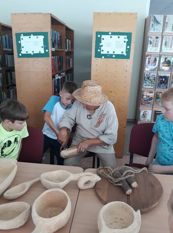 Bibliotekoje eksponuojamos dvi tautodailininko parodos – medžio drožinių „Ličynos, paukščiai ir kiti mediniai prajovai“ ir fotografijų „Roges ruošk vasarą“.
