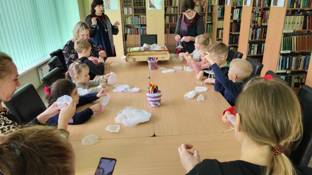 Balandžio 15 d. Gruzdžių Augustino Griciaus bibliotekoje lankėsi Akmenės r. Kruopių pagrindinės mokyklos ikimokyklinio ugdymo skyriaus „Pelėdžiukų“ grupės ugdytiniai, mokytojos Odeta Kalinauskaitė, Vaida Lydienė ir mokytojų padėjėjos Vitalija Klovienė, Edita Lukšienė. Pirmiausia vaikai ir mokytojos išbandė atnaujintą biblioterapijos erdvę. Svečiams labai patiko masažinės kėdės, pagalvėlės ir projektoriaus sukurtas raibuliuojantis žvaigždėtas dangus. Bibliotekos lėlių teatro „Stebuklingas lagaminas“ kambaryje visi dalyvavo edukaciniame užsiėmime ,,Teatrinės lėlės – kas tai?“. Vyresnioji bibliotekininkė Jurgita Jasiškytė vaizdingai svečiams papasakojo apie lėlininko profesiją, teatrinių lėlių rūšis, jų atsiradimo istoriją, supažindino su jų valdymo ypatumais. Vaikai ne tik turėjo galimybę apžiūrėti, paliesti, prisimatuoti lėles, bet ir patys išbandyti lėlių teatro aktoriaus profesiją. Visi edukacijos dalyviai su lėlėmis vaidino pasaką „Dangus griūva“. Oi, kiek buvo emocijų, kai vaikai išsirinko pirštinines lėles ir tapo pasakos personažais. Aptarę, kaip sekėsi vaidinti, visi suskubo gamintis lėlytes iš skiautelių, siūlų, karoliukų, kurias išsivežė namo prisiminimui.