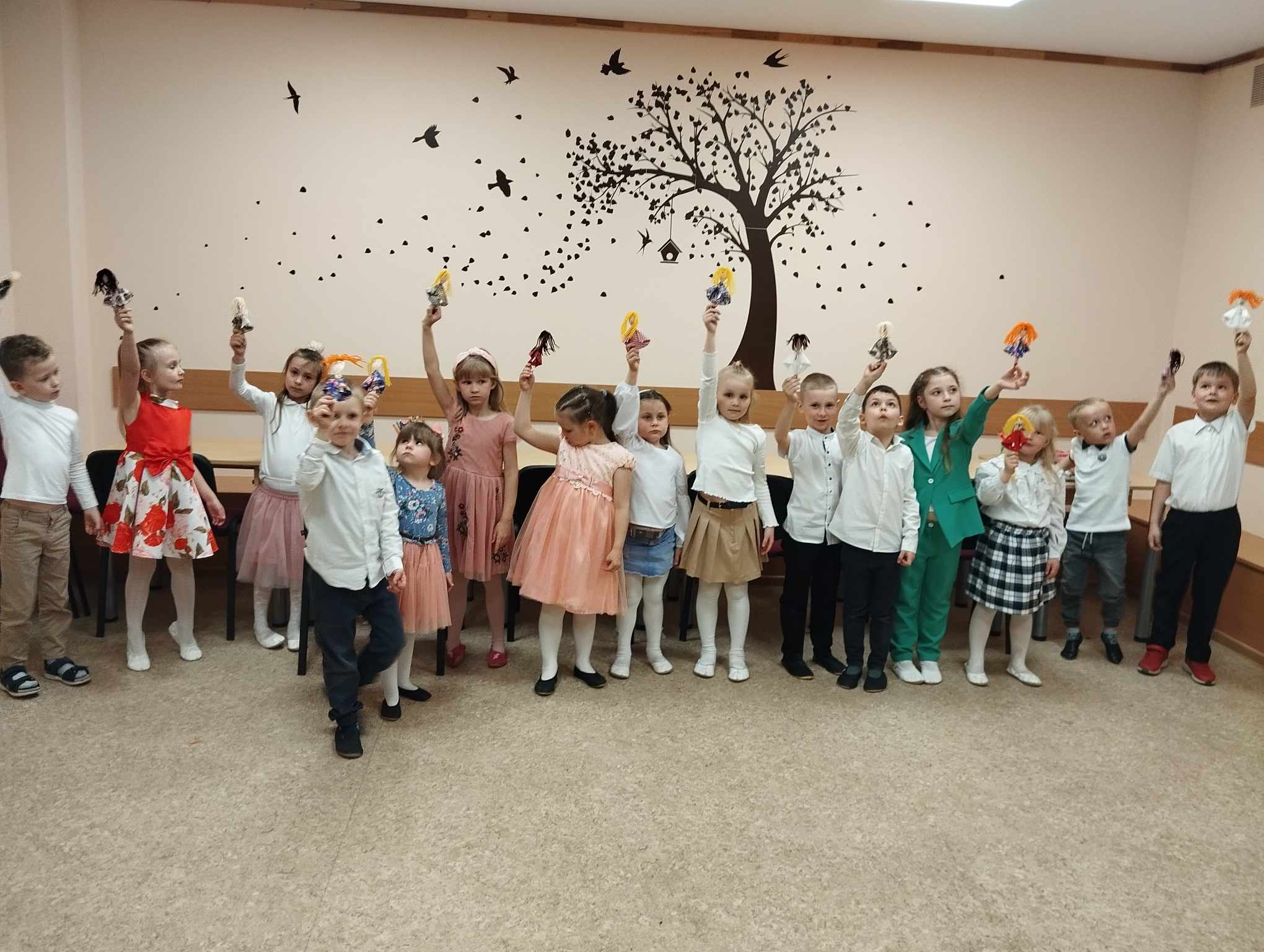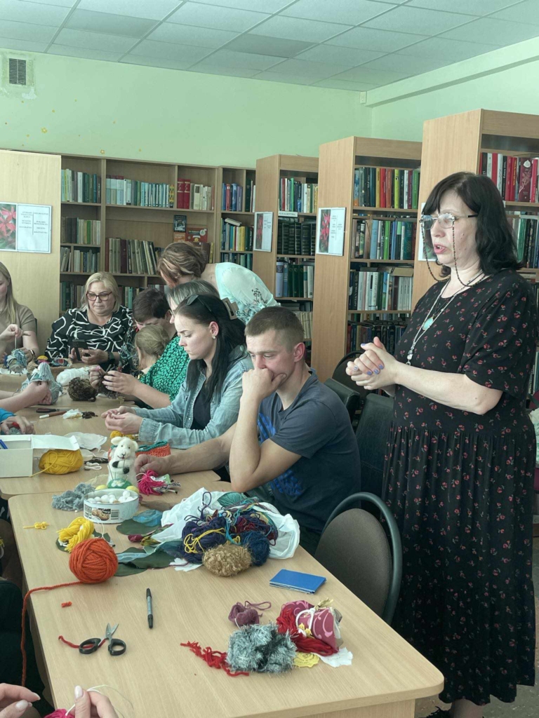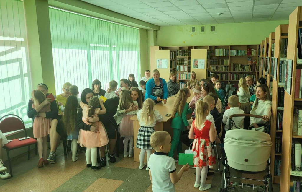 Visi dalyviai Vaikų literatūros skyriuje aplankė parodą „Skarelė mamai“, kurioje eksponuojamos Gruzdžių lopšelio-darželio „Puriena“ ir „Pelėdžiukų“ grupės vaikų išpieštos skarytės.