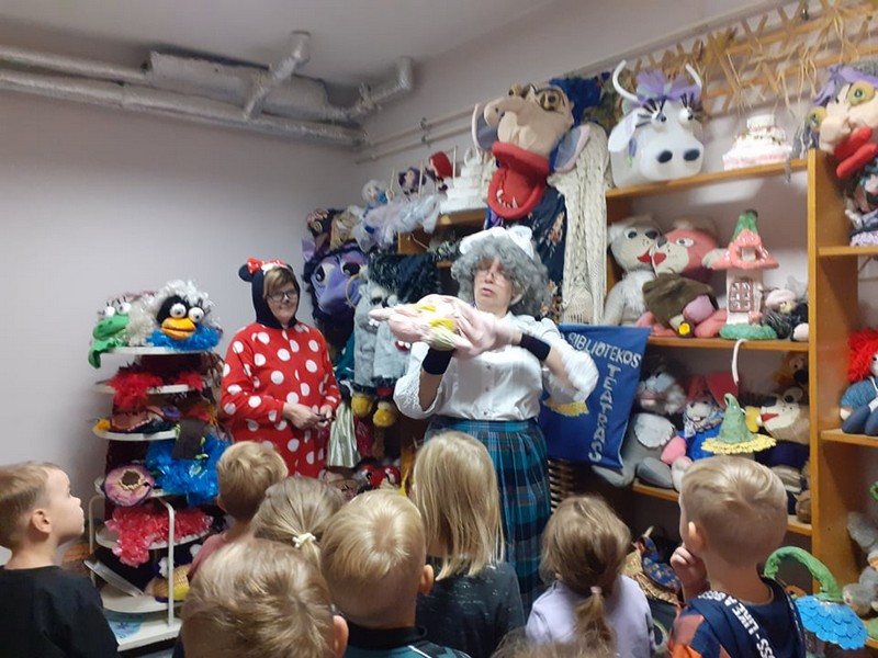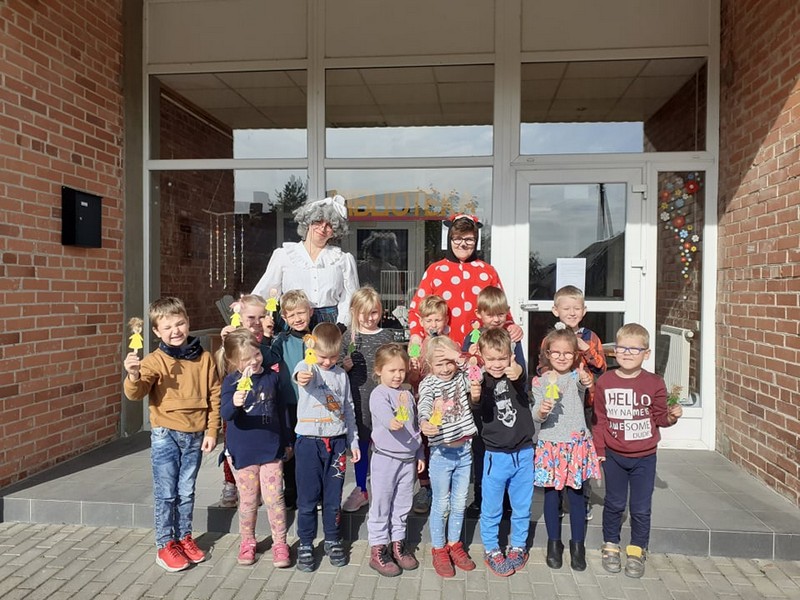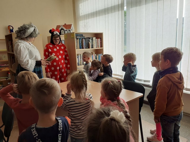 Rugsėjo 16 dieną Gruzdžių Augustino Griciaus bibliotekoje apsilankė Šiaulių lopšelio-darželio ,,Ežerėlis“ ,,Smalsučių“ grupės vaikučiai su auklėtoja Vitalija Norkiene ir auklėtojos padėjėja Agne Rimeikiene. Svečius pasitiko Pasakų močiutė – bibliotekininkė. Ji vaikučiams trumpai papasakojo apie biblioteką, apie bibliotekoje teikiamas paslaugas ir pakvietė visus į Vaikų literatūros skyrių. O ten, vaikai pamatė ant grindų besimėtančią knygelę, o prie knygų lentynų verkiančią peliukę Minę. Peliukė mažiesiems svečiams papasakojo, kad ji iškrito iš knygos, kai neklaužada berniukas, pavartęs ją, numetė ant grindų. Peliukė Minė vaikučiams paaiškino, kaip reikia elgtis bibliotekoje, kaip elgtis su knygomis, kaip jas saugoti ir gerbti. Apžiūrėję Neįprastų knygų, Teatrinių lėlių kambarius, visi suskubo gaminti lėlyčių iš medinių šaukštelių. Kiek mažiesiems buvo džiaugsmo, kai jie sužinojo, kad savo kurtas lėlytes gali vežtis namo. Išvykdami iš bibliotekos, mažieji svečiai peliukei Minei palinkėjo greičiau sugrįžti į knygą, o Pasakų močiutei – bibliotekininkei pažadėjo, kad jie dar ne kartą apsilankys Gruzdžių Augustino Griciaus bibliotekoje.