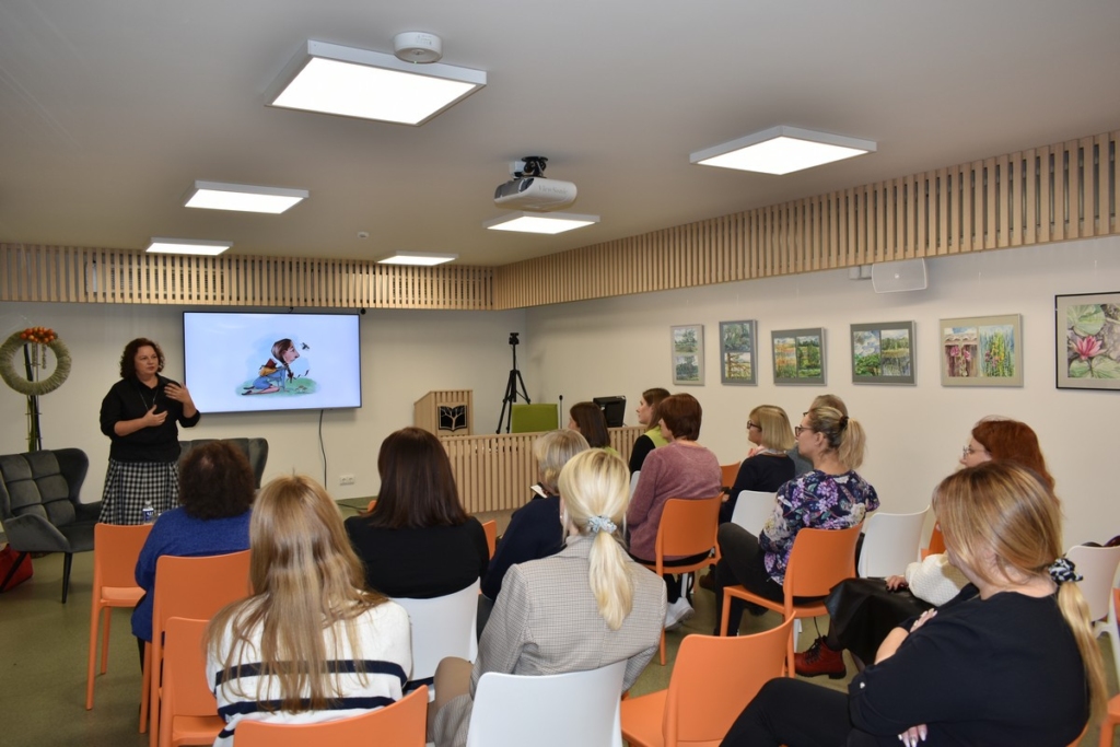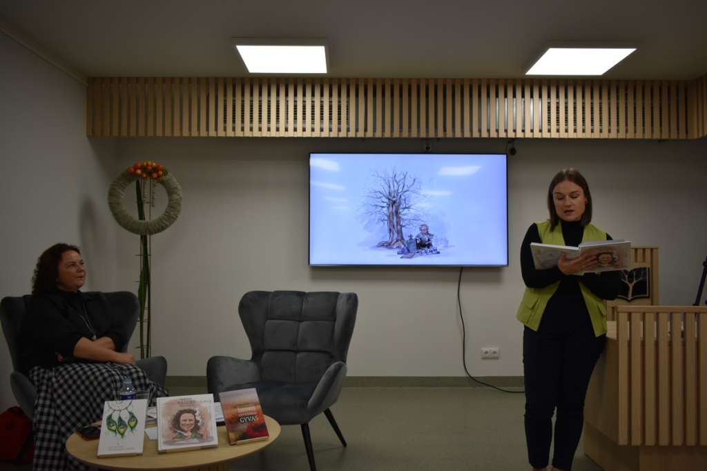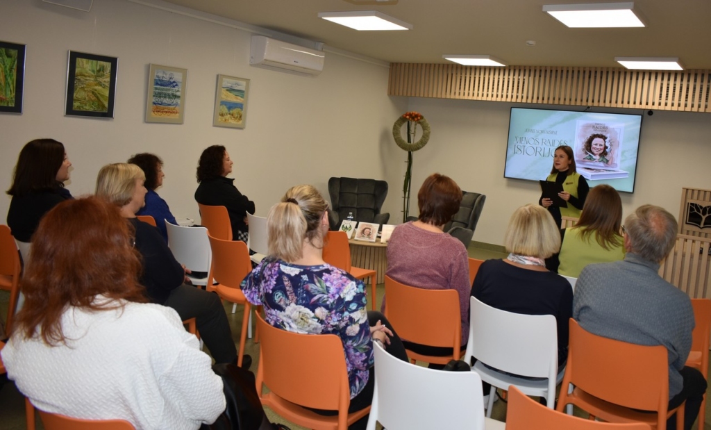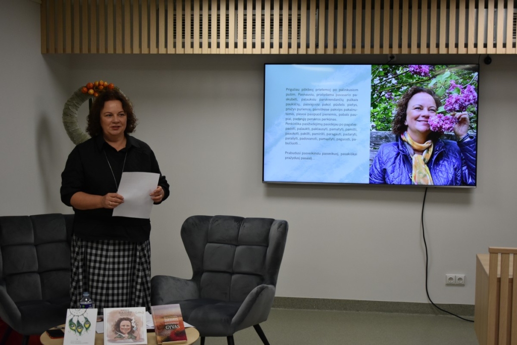 Lapkričio 9 d. popietę  Šiaulių rajono savivaldybės Vytauto Vitkausko viešojoje bibliotekoje lankėsi autorė, respublikinių bei tarptautinių konkursų dalyvė, Šatrijos Raganos premijos laureatė Jūratė Norvaišienė.