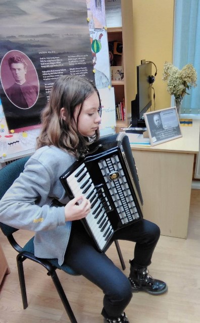 Ginkūnų Sofijos ir Vladimiro Zubovų progimnazijos lietuvių kalbos mokytoja Aušra Višniauskienė popietės metu ne tik išsamiai papasakojo apie svarbiausias poeto biografijos ir kūrybos detales, bet ir supažindino dalyvius, kokia asmenybė jis buvo, ką mėgo, ir daug kitų istorijų.