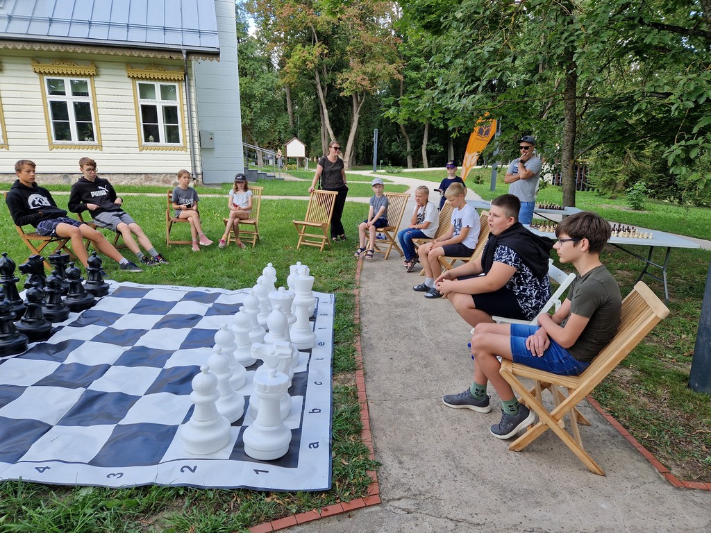 Dėkojame visiems dalyvavusiems ir kviečiame savarankiškai rugpjūčio 24–26 d. didžiaisiais lauko šachmatais žaisti Vasaros skaitykloje Kuršėnų miesto parke.