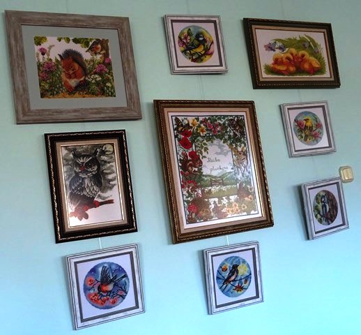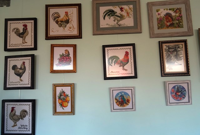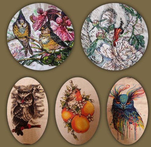 Pagrindinė siuvinėjamų darbų tema – gamta, paukščiai, gyvūnai ir gėlės. Kadangi Orinta užsiimama veislinių vištų auginimu, daugelyje paveikslų puikuojasi vienas už kitą gražesni gaidžiai.