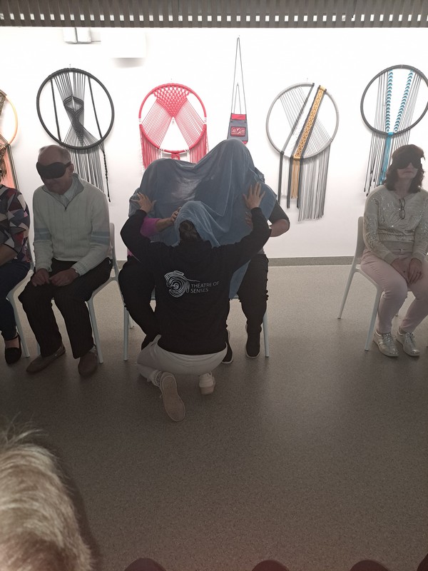 Edukacinio užsiėmimo–sensorinio patyrimo „Pojūčių paveikslai. M. K. Čiurlionis“ metu dalyviams buvo užrištos akys, kad jie galėtų pasinerti į įvairius tyrinėjimus. Kaip teigia šio teatro režisierė ir aktorė Karolina Žernytė, „žmonės užrištomis akimis atranda ir savo baimes, kurių nežinojo turintys. Paprasti daiktai, pavyzdžiui, medžio kvapas, jiems gali sukelti neigiamų asociacijų, galbūt sugrįžta jautrūs prisiminimai iš vaikystės“.