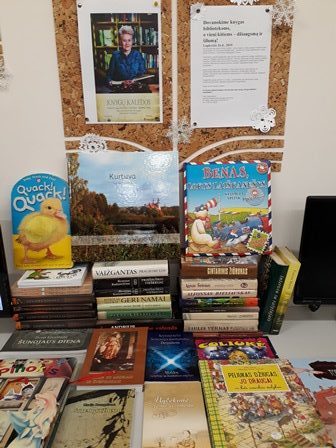 Kurtuvėnų bibliotekos vyresnioji bibliotekininkė Aurelija Kniurienė pakvietė miestelio bendruomenę prisijungti prie Prezidentės Dalios Grybauskaitės inicijuojamos akcijos ,,Knygų Kalėdos“. Į paskelbtą akciją ,,Dovanokime knygas bibliotekoms, o vieni kitiems – džiaugsmą ir šilumą“ atsiliepė penki bibliotekos skaitytojai, kurie padovanojo 31 knygą. Labai džiaugiamės kurtuvėniškio Algirdo Kontrimo padovanota naujai išleista knyga „Kurtuva, arba kur pasiklydo grafaitė“. Lankytojai į biblioteką užsuka ne tik pavartyti šio fotografijų albumo, bet ir apžiūrėti eksponuojamą fotografijų parodą ,,Žemaitijoje sninga“, kurią dar galima bus pamatyti iki vasario 14 d.