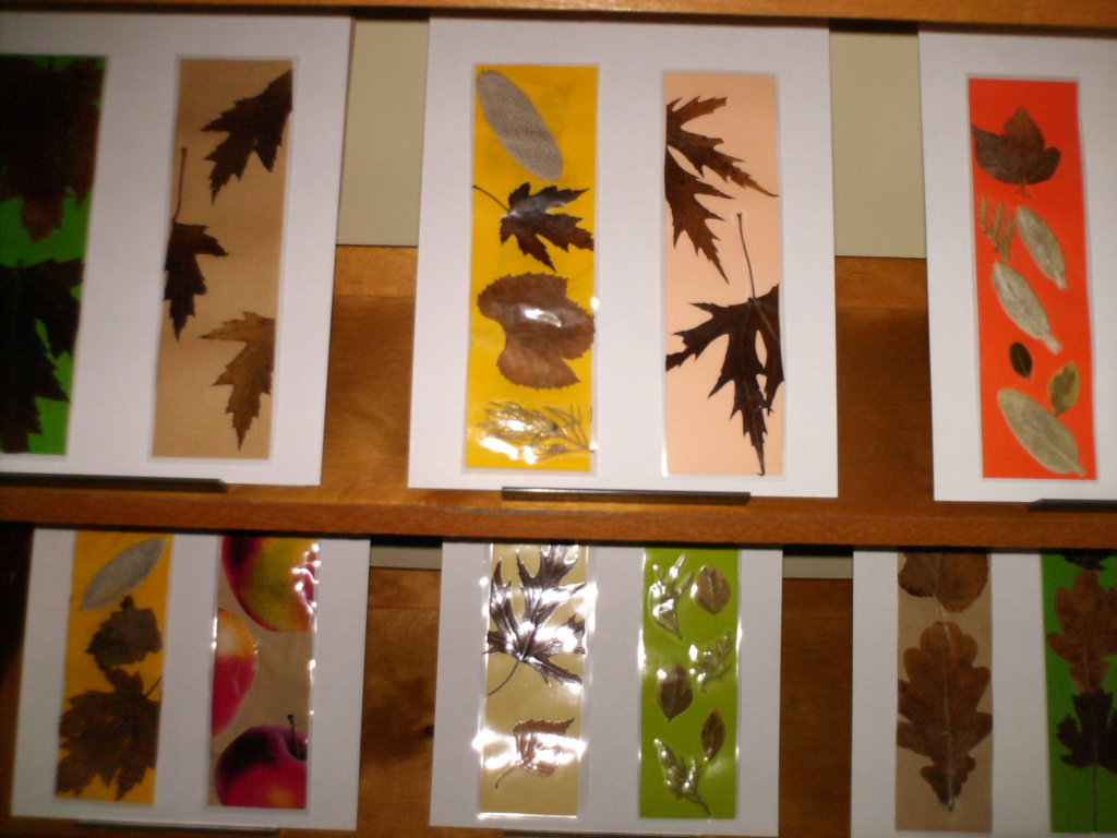 Kad nereikėtų pasižymėti skaitomą puslapį, užlenkiant jo kampą, buvo nuspręsta padaryti skirtukų. O juk įvairių priemonių, papuošti skirtukams, galima rasti gamtoje. Prisirinkę medžių lapų, sėklyčių ir kt. medžiagų iš gamtos mokiniai sukūrė skirtukus, kurie papuošė biblioteką. Norėdami skirtukus sutvirtinti ir džiaugtis jais ilgesnį laiką, juos specialiomis priemonėmis laminavome.