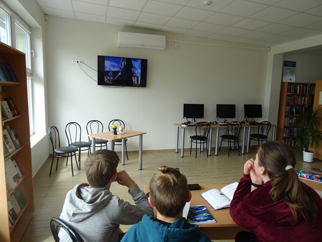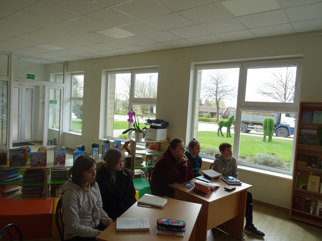 Bibliotekininkė Daiva Remeikienė pakvietė mokinius apsilankyti Maironio lietuvių literatūros muziejuje Kaune (virtualiai, buvo demonstruojamas filmas ,,Maironis. 150-osios metinės“). Po filmo buvo kalbama apie poeto asmenybę, išsiaiškinta tokių žodžių, kaip ,,brevijorius“, ,,vizitinė kortelė“, „skrajutė“ ir kt. reikšmė. Mokiniai buvo supažindinti su knygų paroda apie autorių, atkreipiant dėmesį, kad daugelis poeto eilėraščių yra tapę dainomis. Buvo klausomasi dainų ,,Lietuva brangi“, ,,Kur bėga Šešupė“ ir kt. įrašų.