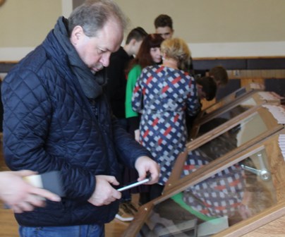 Į Kuršėnus atvyko gausi Vilniaus universiteto bibliotekos komanda: Nijolė Klingaitė-Dacevičienė, Mokslinių tyrimų ir paveldo rinkinių departamento direktorė, Paulius Bagočiūnas, Rankraščių skyriaus bibliotekininkas, Virginija Galvanauskaitė, Retų spaudinių skyriaus vedėja, Snieguolė Misiūnienė, Komunikacijos ir informacijos skyriaus parodų kuratorė ir kt.