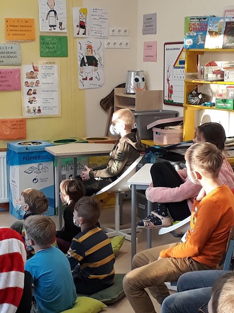 Kad lengviau įsivaizduotų pasakų kūrėjo darbą, pasitelkiant paveikslėlius bei simbolius, vaikams pasiūlyta kurti bendrą istoriją. Pradžią, pavaizduodamas liūto, miško karaliaus paveikslą, pametėjo ir padėjo kurti pats rašytojas. Toliau galveles miklinti turėjo mažieji, beje, gana intensyviai. Mat atsitiko baisus dalykas, paaiškėjo, jog kažkas pavogė liūto karūną. Buvo traukiamos miško gyvūnų kortelės bei kitose kortelėse pavaizduotos atskiros situacijos. Galop, pasakos pabaigoje, dingusios karūnos detektyvas išspręstas ir sužinota –  karūną nukniaukė kiaulė.