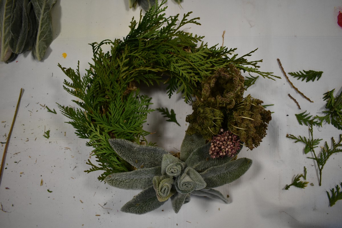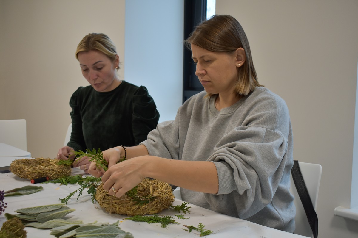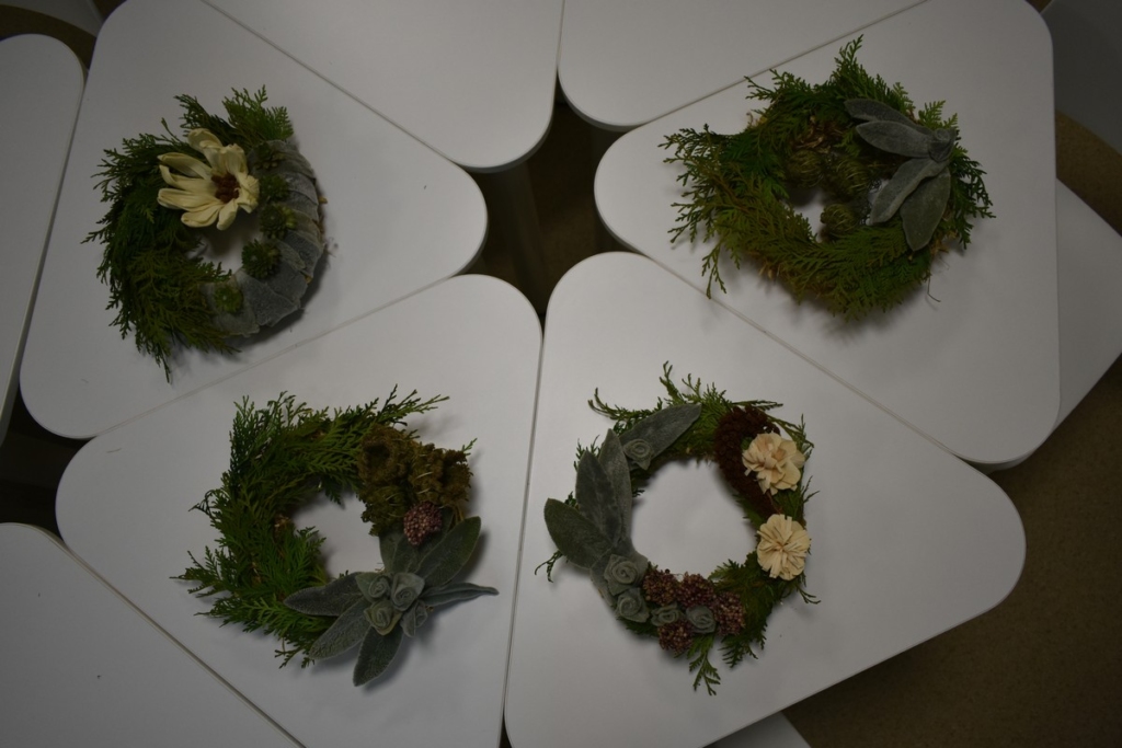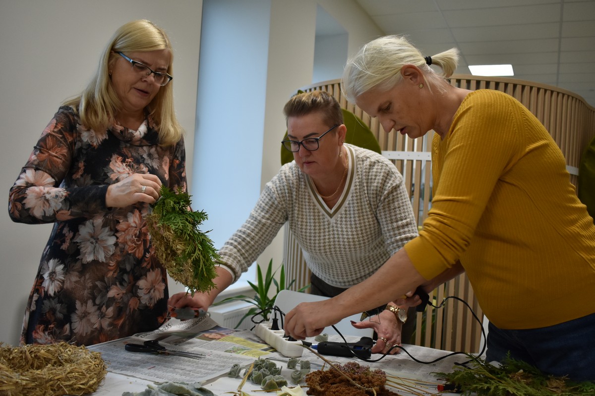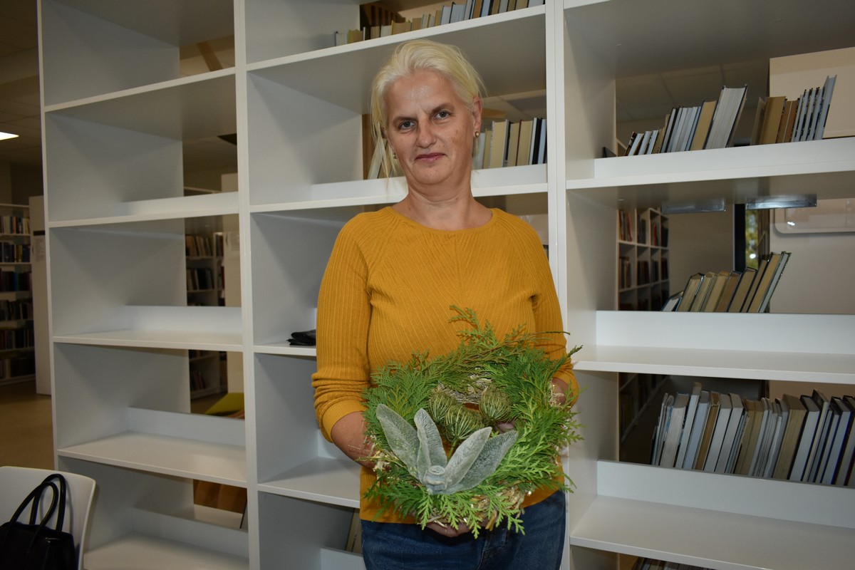Kai darbai nudirbti ir rudens vakarai ilgėja, galima prasimanyti įvairių pramogų. Tradicinių. Laiko patikrintų ir savų. Mūsų bibliotekoje yra tikrų meno vertybių puoselėtojų, kurios sugeba įprasminti natūralų grožį. Vyresnioji bibliotekininkė Asta Urbelienė noriai perteikė savo gabumus pinant vainikus. Vėlinių vakarą, žvakių šviesoje ant artimųjų kapų atnešę vainiką, susimąstysime. O dabar, jau viskas. Vainikai sudėti.