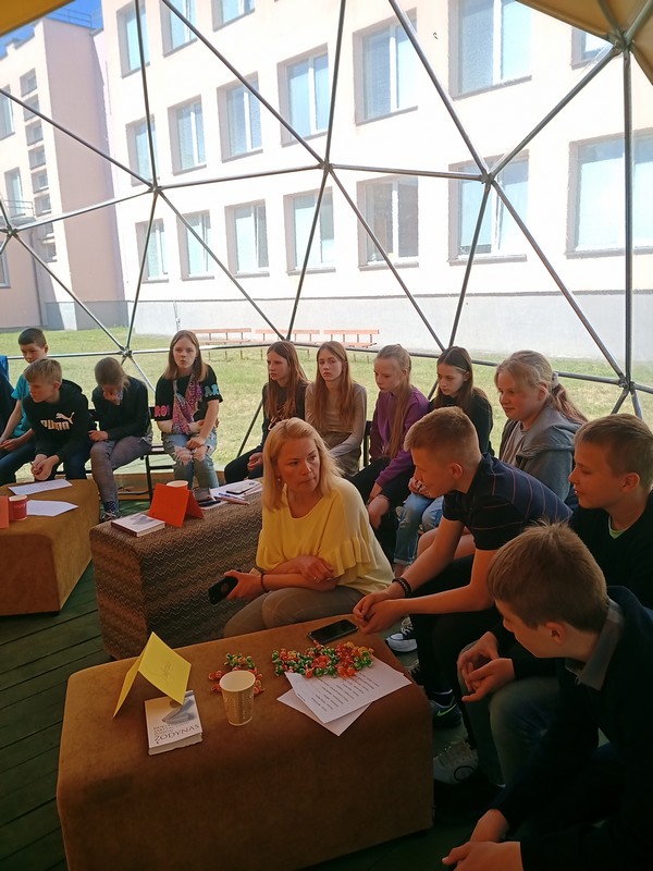 Šiemet sukanka 35 metai, kai lietuvių kalbai grąžintas valstybinės kalbos statusas. Birželio 5 d. Kužių biblioteka organizavo atvirą lietuvių kalbos pamoką 5 kl. mokiniams (mokytoja Lilita Jankauskienė), Kužių mokyklos kiemo kupole. Dirbdami grupėse, vaikai turėjo atlikti įvairias užduotis: sugalvoti komandos pavadinimus iš sudurtinių žodžių, sudėlioti logišką sakinį, panaudojant kuo daugiau pateiktų žodžių, atpažinti ir paaiškinti frazeologizmus, teisingai įvardyti kūrinių autorius. Žaismingiausia užduotis buvo surasti žemaitiškų žodžių atitikmenis pateiktose vaizdinėse priemonėse. Mokiniai aktyviai dalyvavo improvizuotoje pamokoje, nes bibliotekininkių atsineštas saldainių krepšelis labai motyvavo. Apžvelgiant pamokos rezultatus, norisi pacituoti J. Jablonskį: „ Kalboje tauta pasisako, kas esanti, ko verta. Tautos kalboje yra išdėta visa jos prigimtis – istorija, būdo ypatybės, siela, dvasia.“.