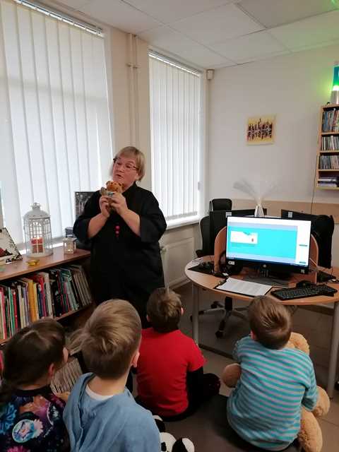 Ankstyvą lapkričio 11-osios rytą Kužių mokyklos trečiokai, lydimi mokytojos Editos Lingaitės, ir 4a klasės mokiniai su mokytoja Rasa Lukauskiene rinkosi miestelio bibliotekoje. Su didžiuliu susidomėjimu mokiniai išklausė bibliotekininkės skaitomos terapinės pasakos iš Ingos Narijauskienės knygos „Kaip pelėda Drūlija kantrybės ieškojo“. Vienos pasakos neužteko, tad mokinukai panoro paskaityti patys. Visos terapinės pasakos apie gyvūnus buvo pasirinktos neatsitiktinai. 2022 metai – Gyvūnų gerovės metai.