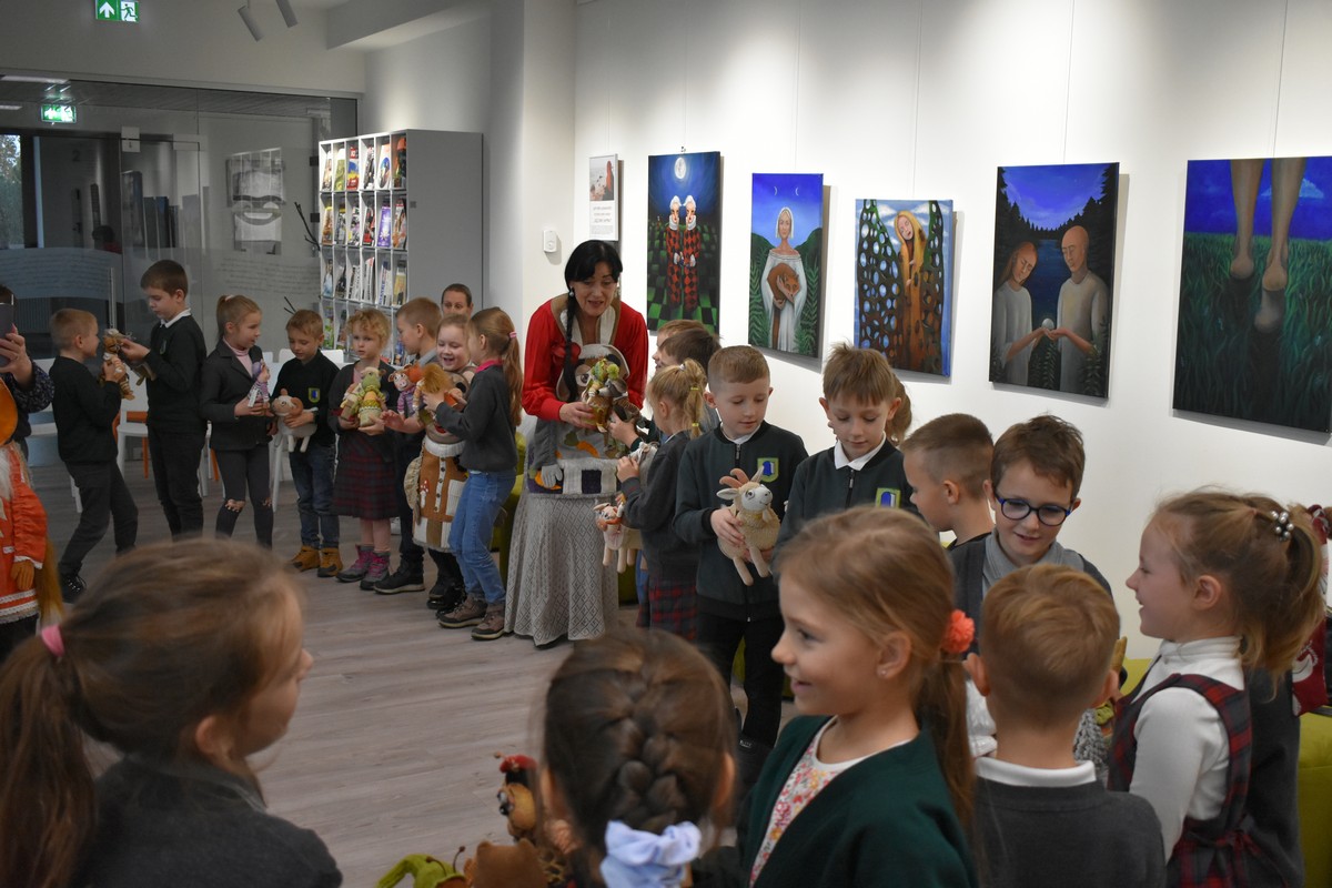 Gausus būrys mokinukų iš Kuršėnų Stasio Anglickio progimnazijos bei Kuršėnų Pavenčių mokyklos – daugiafunkcio centro, lydimi mokytojų, atvyko į susitikimą su tautodailininke, tekstilininke, žaislų kūrėja ir mokytoja Asta Liaudanskiene.