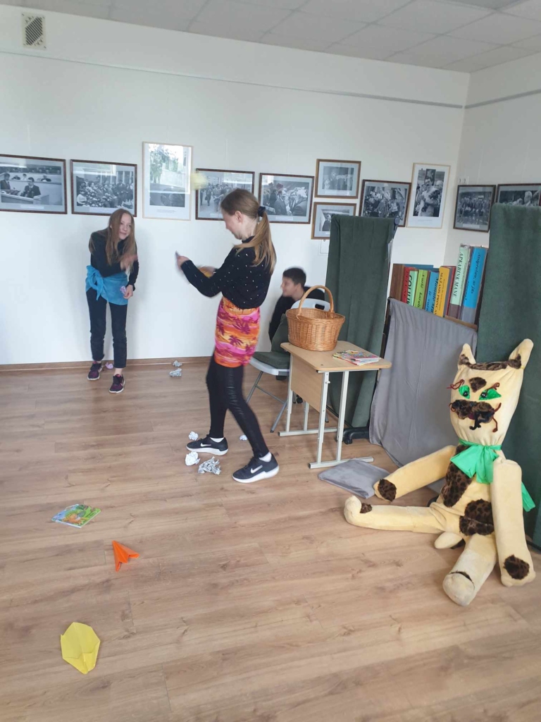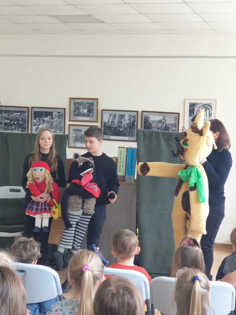 Gegužės 8-osios rytą linksmai nusiteikę Dubysos aukštupio mokyklos Bazilionų skyriaus pradinių klasių mokiniai, kartu su mokytojomis ir ikimokyklinio ugdymo „Bitučių“ ir „Pelėdžiukų“ grupių vaikučiais rinkosi į Bazilionų Kultūros salę paminėti Spaudos atgavimo 120-ųjų metinių ir pažiūrėti Kurtuvėnų bibliotekos lėlių teatro grupės „Kurtinukai“ spektaklį „Vilkas, kuris iškrito iš knygos“, pagal Thierry Robberecht knygą. Šio spektaklio režisierė ir lėlių autorė – Aurelija Kniurienė, aktoriai: Austėja Pociūtė, Smiltė Gylytė ir Jokūbas Grigalaitis.