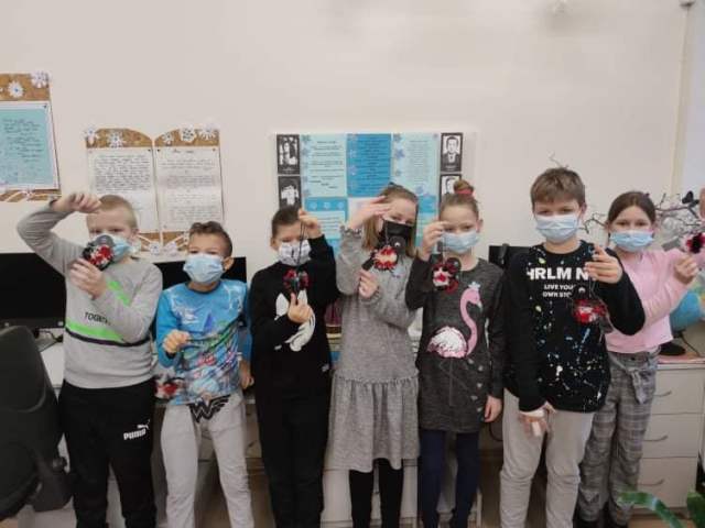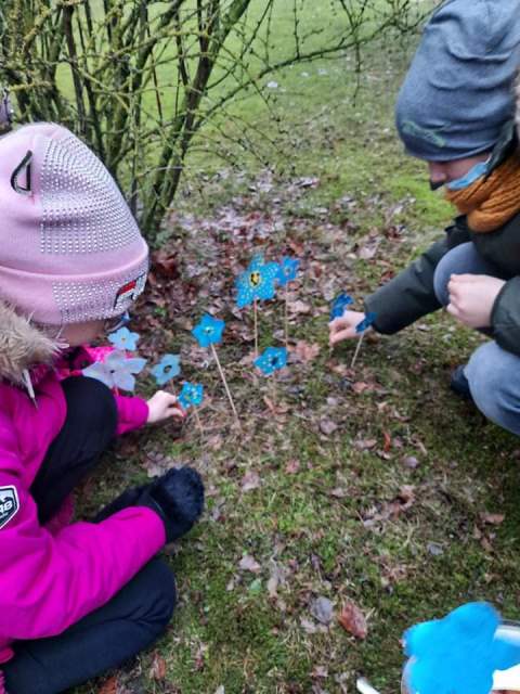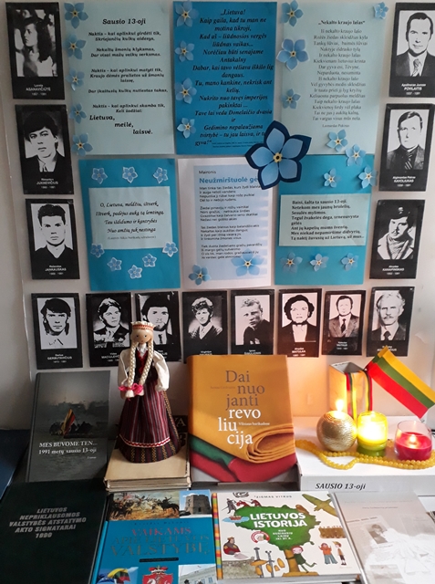Tai buvo intro į du edukacinius užsiėmimus: „Pasidaryk neužmirštuolę“ ir „Sniegenos atskrido“. Neužmirštuolės trapus žiedelis jau tapo simboliu, neleidžiančiu pamiršti kraupių įvykių ir tikrosios laisvės kainos. Na, o sniegenos – paukšteliai, kurie susitepę plunksneles krauju, vis dar atskrenda į Vilnių ir vis prisimena Loretą ir kitus žuvusiuosius. Po edukacijų sniegenos sutupdytos prie skulptoriaus Vitalijaus Lukošaičio paminklo „Kilk ir kelk“, skirto Povilo Višinskio ir knygnešių atminimui pagerbti. Neužmirštuolės papuošė mokyklos kiemą.