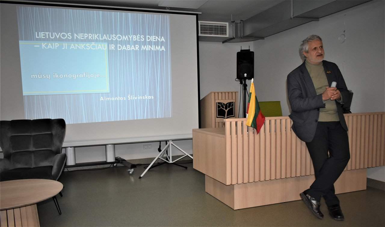 Pažymint šią ypatingai svarbią Lietuvos istorijos datą, lektorius Almantas Šlivinskas skaitė paskaitą „Lietuvos nepriklausomybė – kaip anksčiau ir dabar ji minima“. Lektorius lygino politinių švenčių minėjimą anuomet, tarpukario Lietuvoje, ir dabar, remdamasis ikonografija: tų įvykių pateikimu atvirukuose, plakatuose bei senose fotografijose.