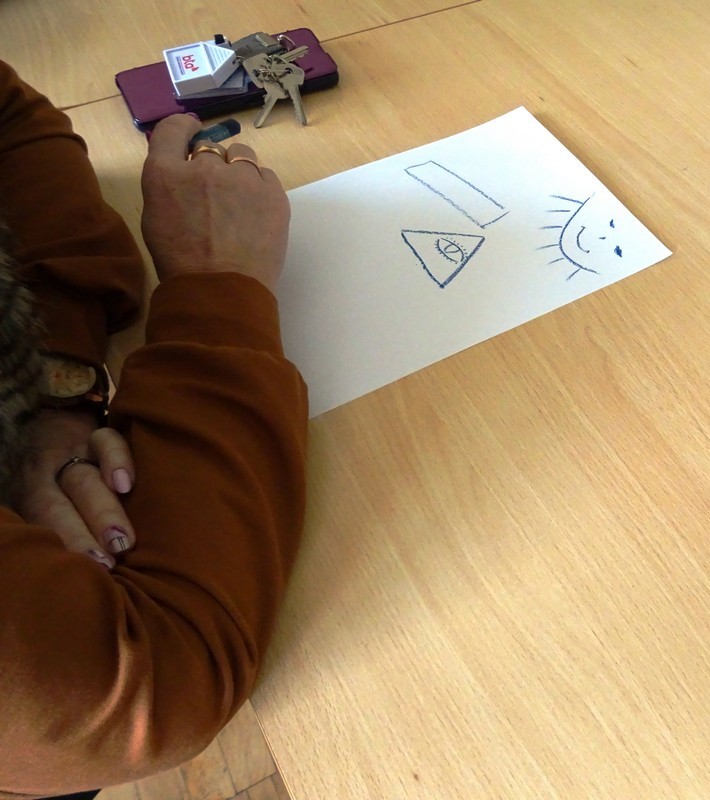 Po paskaitos dalyviams buvo duota užduotis – atvaizduoti dabartinę savo nuotaiką. Ši užduotis paremta japonų metodu, kurį dailininkė naudojo siekdama padėti žmonėms išreikšti savo emocijas ir mintis. Kiekvienas nupieštas stačiakampis tapo unikalia savo autoriaus emocijos išraiška. Lektorė taip pat padėjo dalyviams analizuoti savo piešinius, atskleisdama, ar jie yra praktiški ir stabilūs, ar linkę pasiduoti kitų įtakai. Tai padėjo dalyviams giliau suprasti save ir savo emocijas.