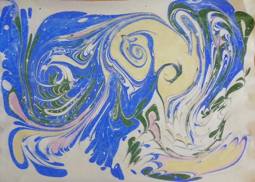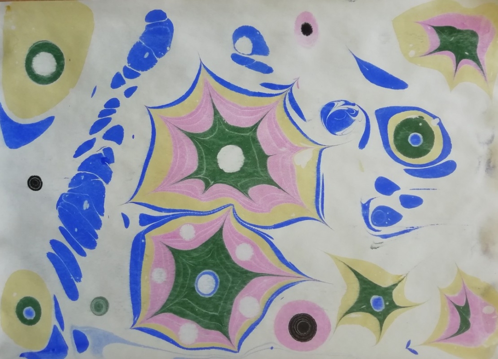 Rugsėjo 17 d. Paežerių bibliotekoje vyko edukacinis užsiėmimas „Spalvų magija“. Tai nebuvo įprastas piešimas, naudojant spalvotus pieštukus ar akvarelinius dažus ir teptuką. Teptuką teko naudoti, bet tai buvo… piešimas (tapymas) ant vandens. Ebru menas – tapymas ant vandens. Su šio meno istorija ir tapymo technika edukacijos dalyvius supažindino bibliotekininkė Siga Paplauskienė. Pradžia buvo nelengva, bet supratus vandens ir dažų ypatingas savybes kilo daug gražių idėjų ir noras jas įgyvendinti kito užsiėmimo metu, o jau sukurti darbeliai papuošė biblioteką.
