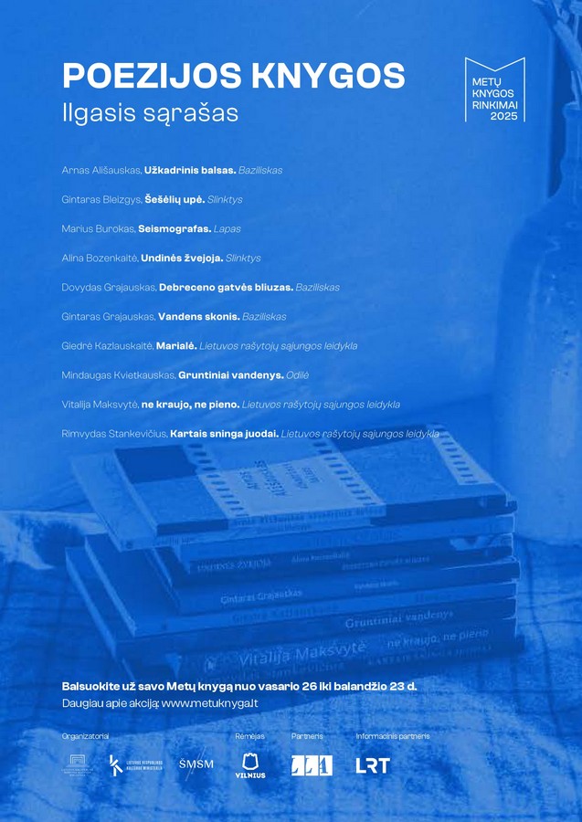 Akcija Metų knygos rinkimai 2025 vyksta trimis etapais. Paviešinami ekspertų komisijos ilgieji knygų sąrašai, kuriuose pristatomi vertingiausi praėjusių metų lietuvių autorių kūriniai.